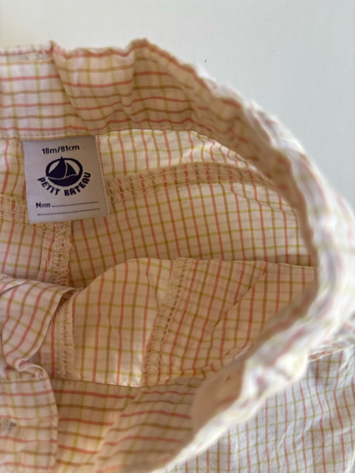 Petit Bateau baby size 12-18 month pink green check adjustable waist s