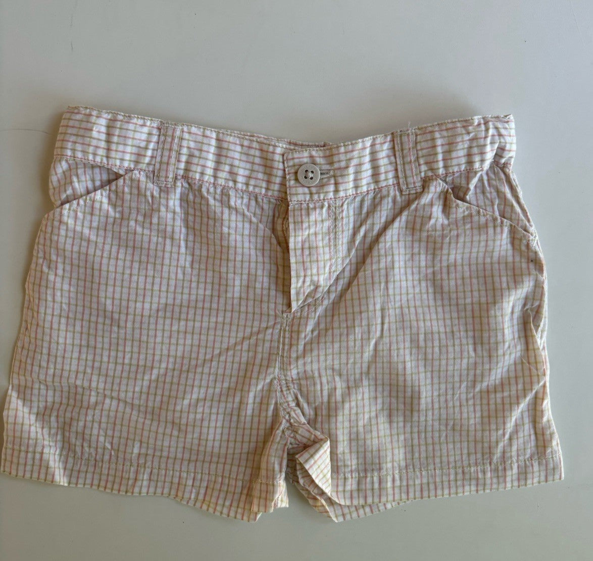 Petit Bateau baby size 12-18 month pink green check adjustable waist shorts VGUC