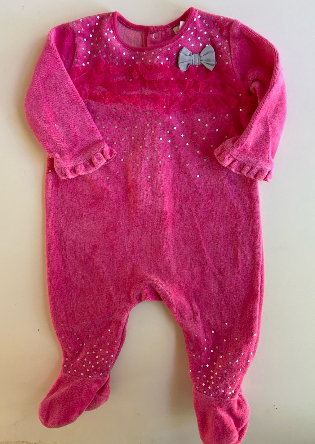 Petit Lem baby girl size 0-3 months pink velour spotted one-piece, VGU