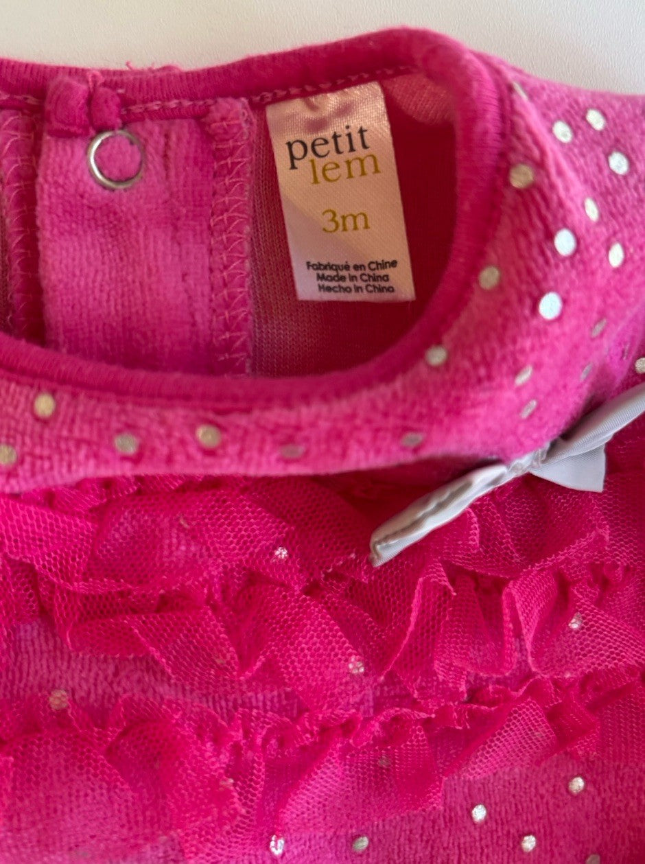 Petit Lem baby girl size 0-3 months pink velour spotted one-piece, VGUC
