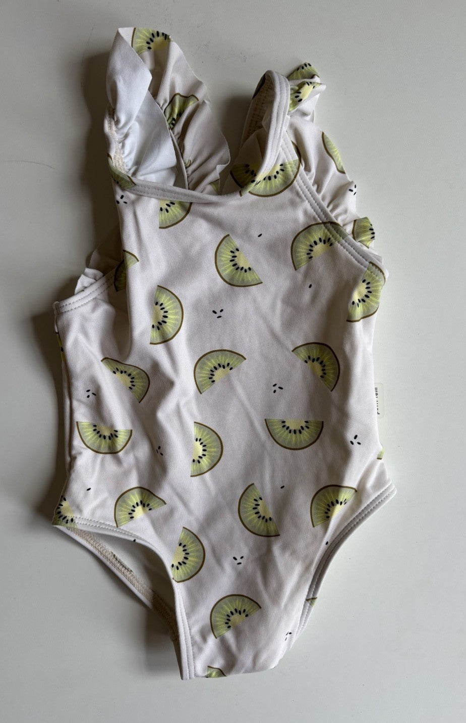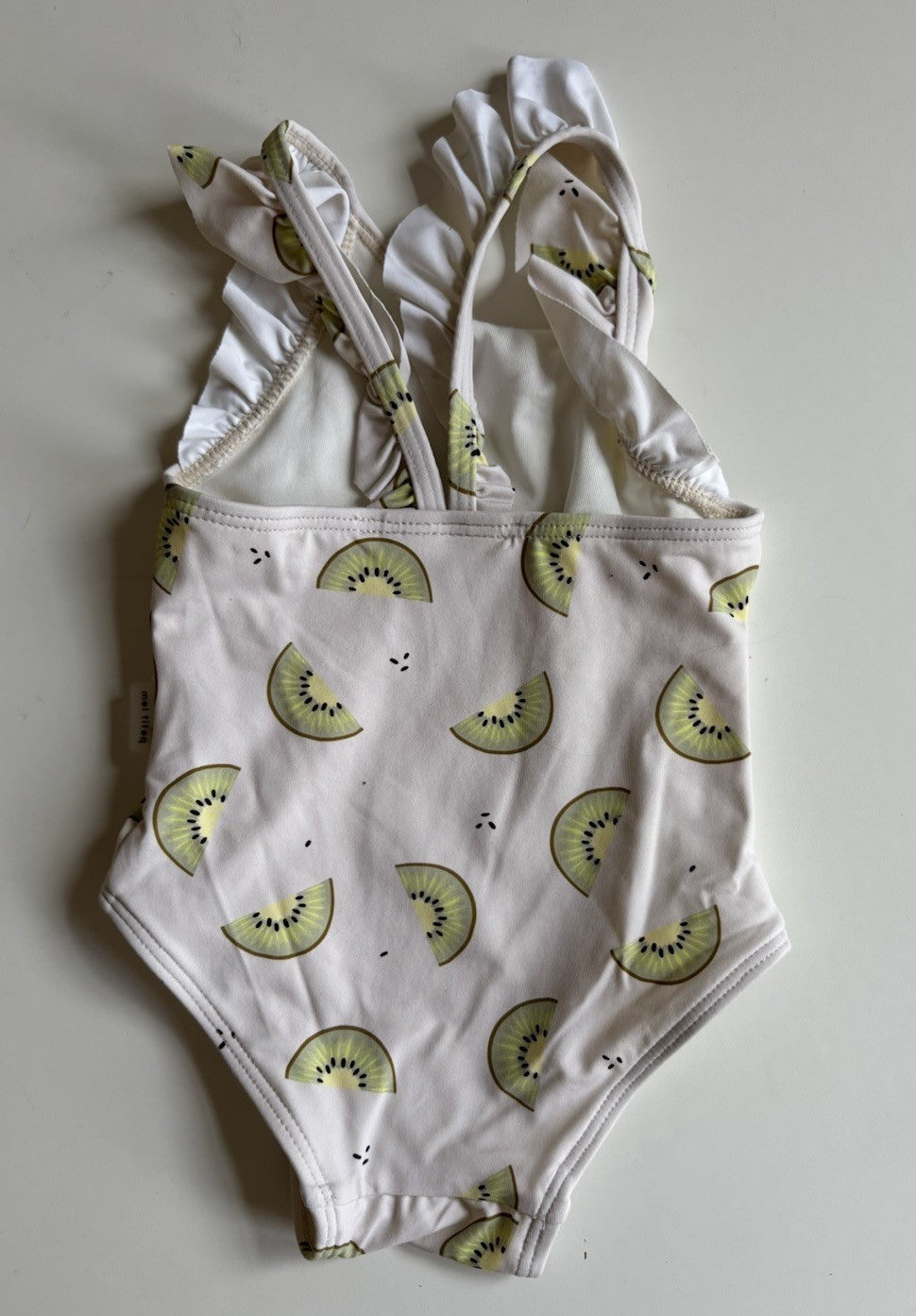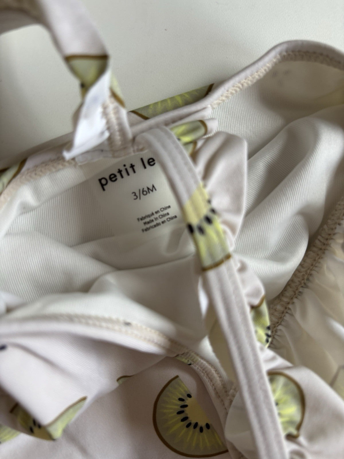 Petit Lem baby girl size 3-6 months white kiwi fruit one piece bathers, VGUC