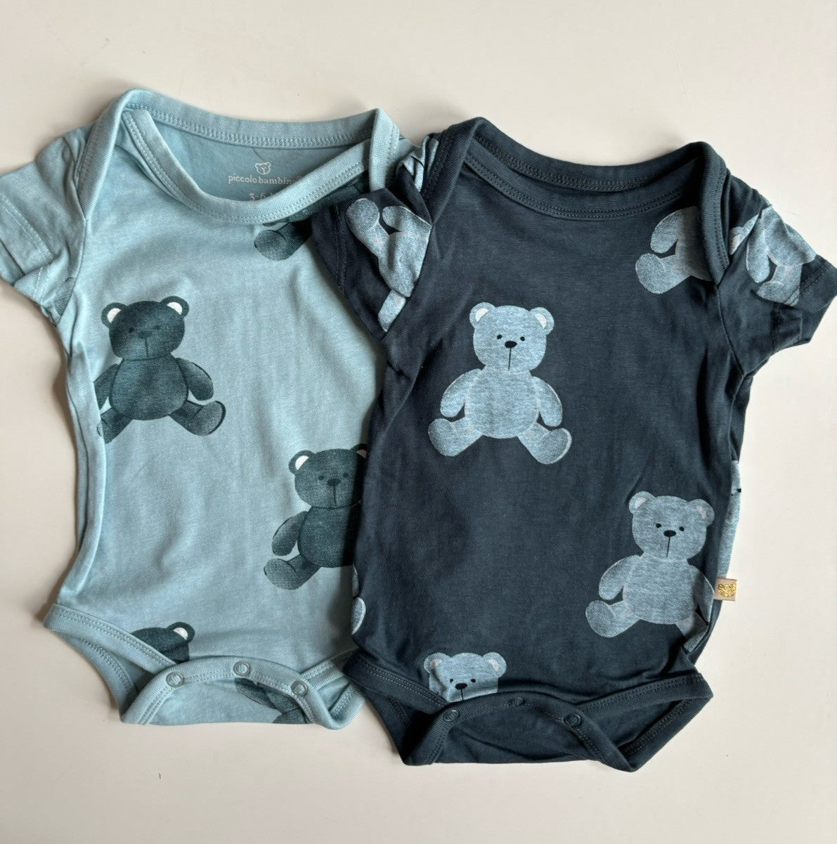 Piccolo Bambino baby size 3-6 months x2 blue bears bodysuit tops, EUC