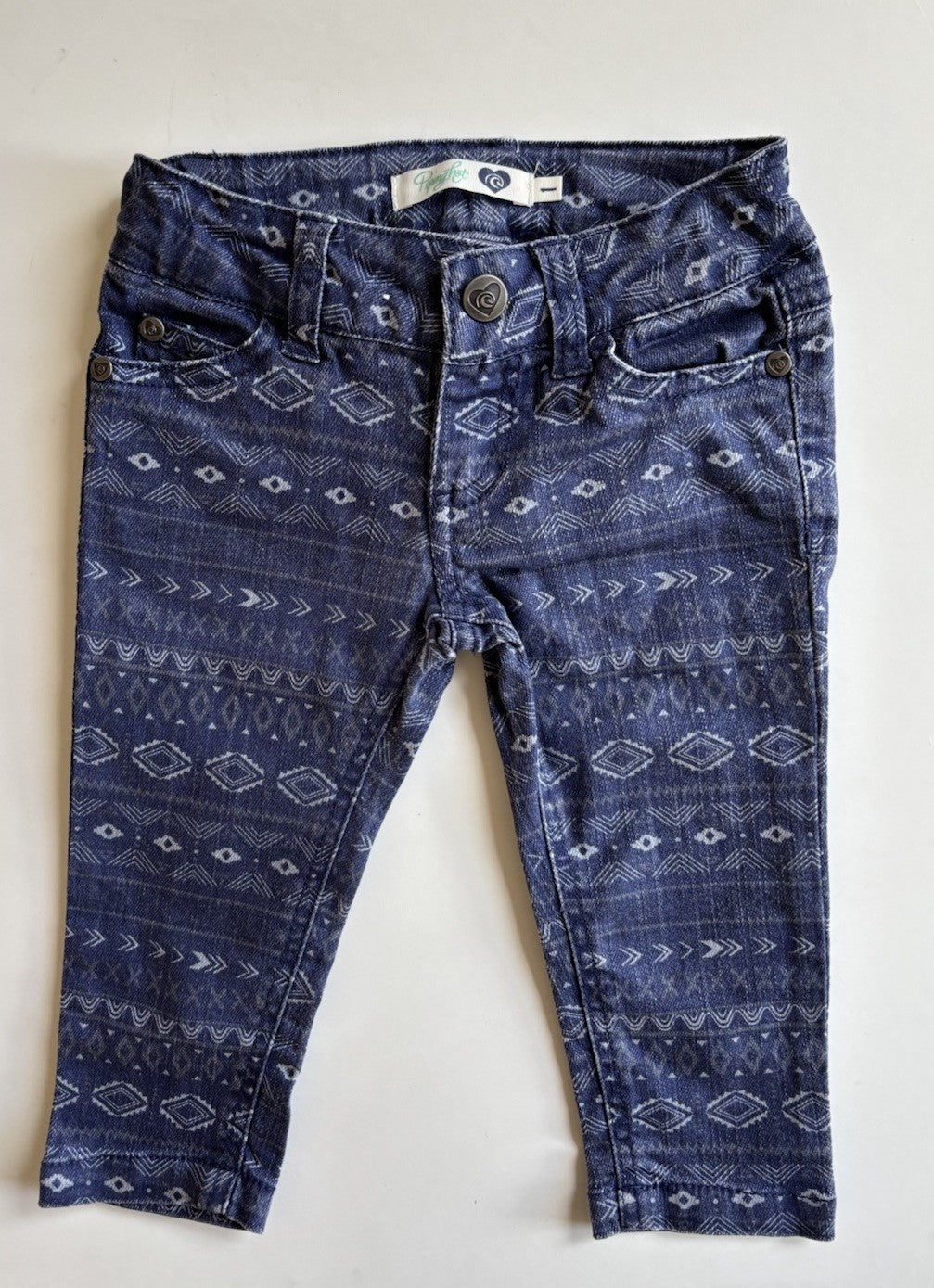 Piping Hot baby girl size 12-18 months blue denim patterned jeans, VGUC