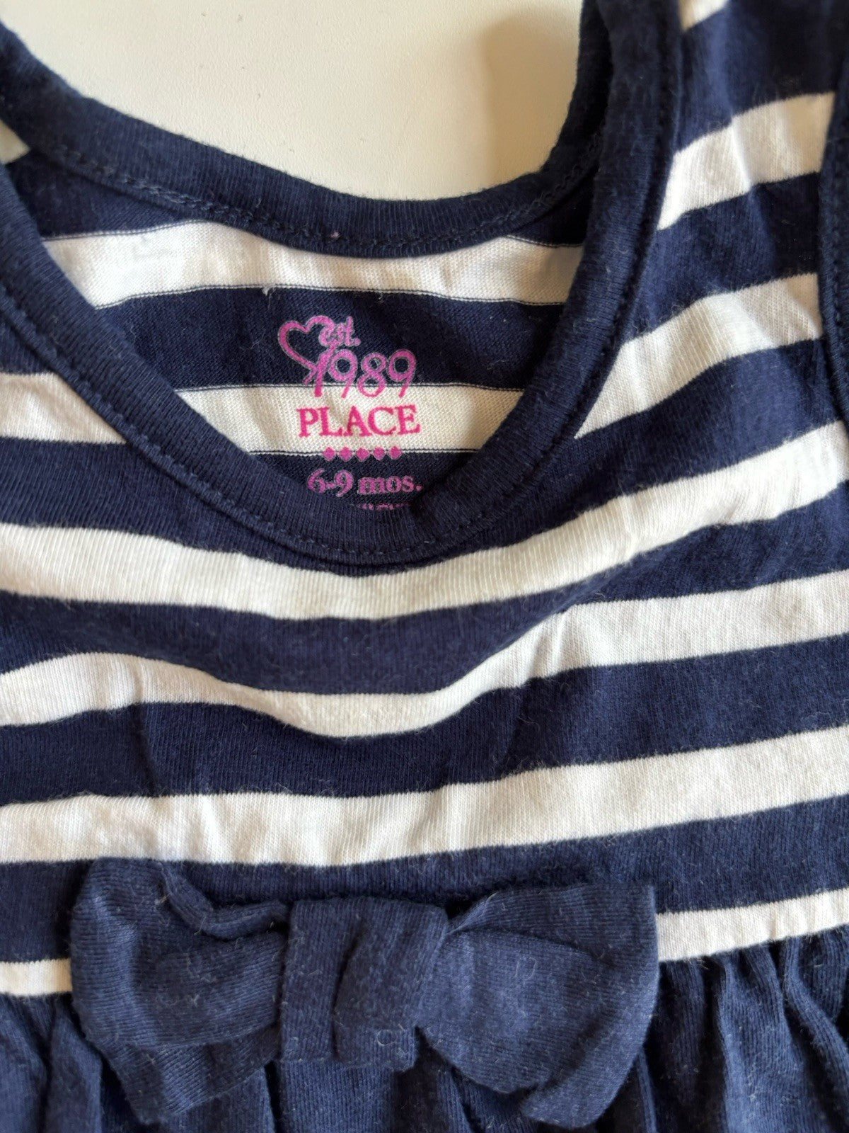Place baby girl size 6-9 months navy blue stripe bubble dress, VGUC