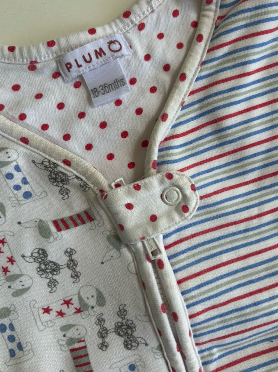 Plum baby size 18-36 months blue red dogs sleeping bag light tog, GUC
