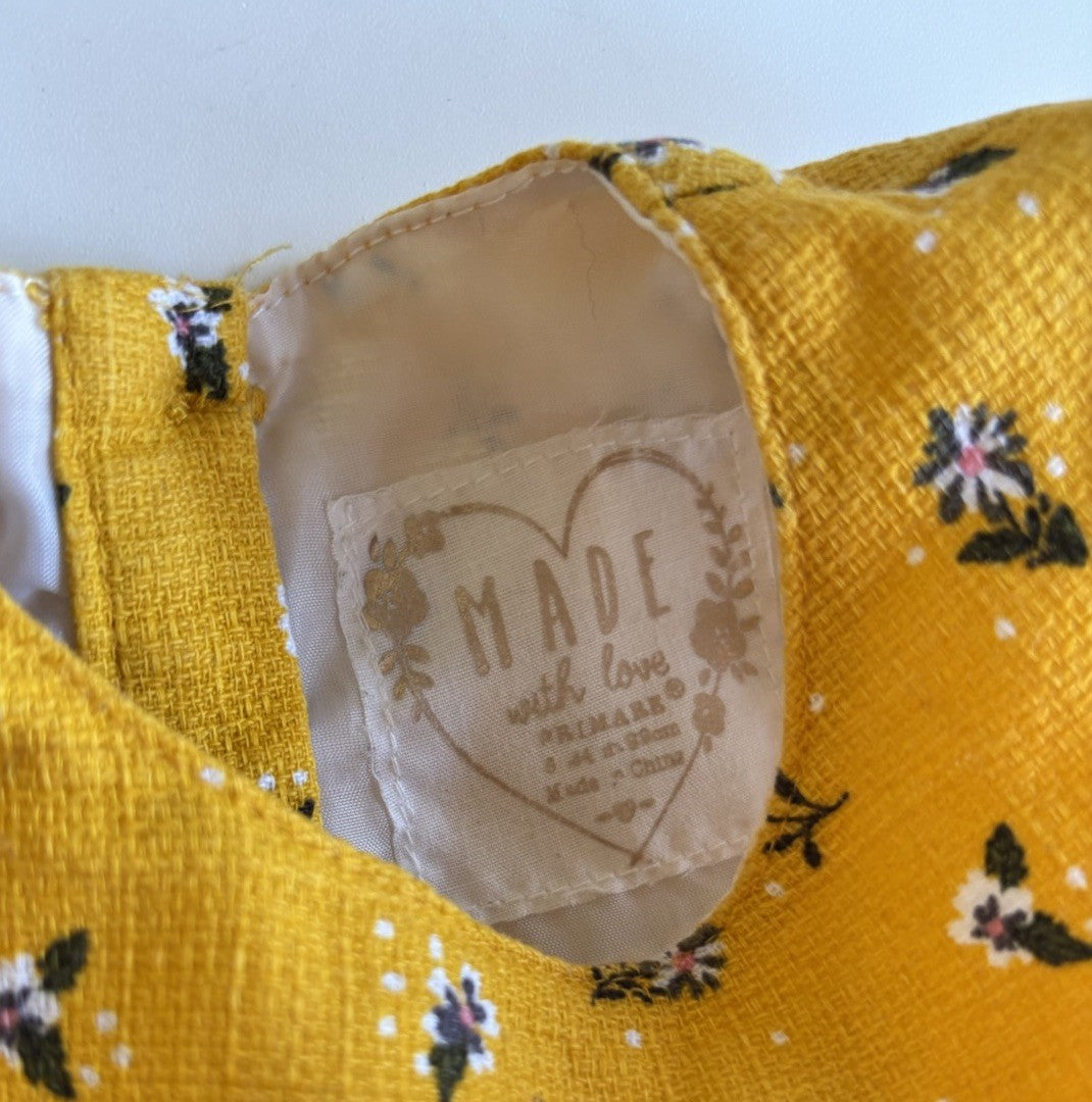 Primark baby girl size 18-24 months yellow floral short sleeve dress, VGUC