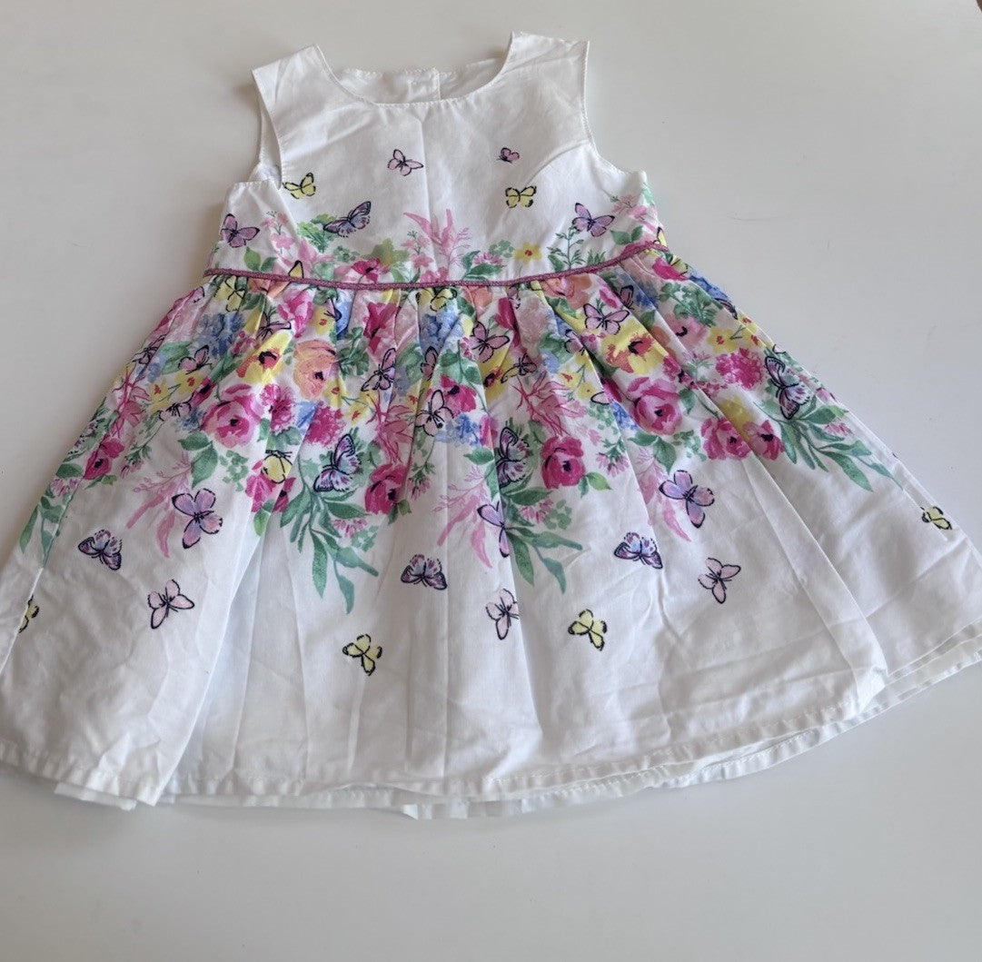 Primark baby girl size 6-9 month white multicoloured floral butterfly dress VGUC