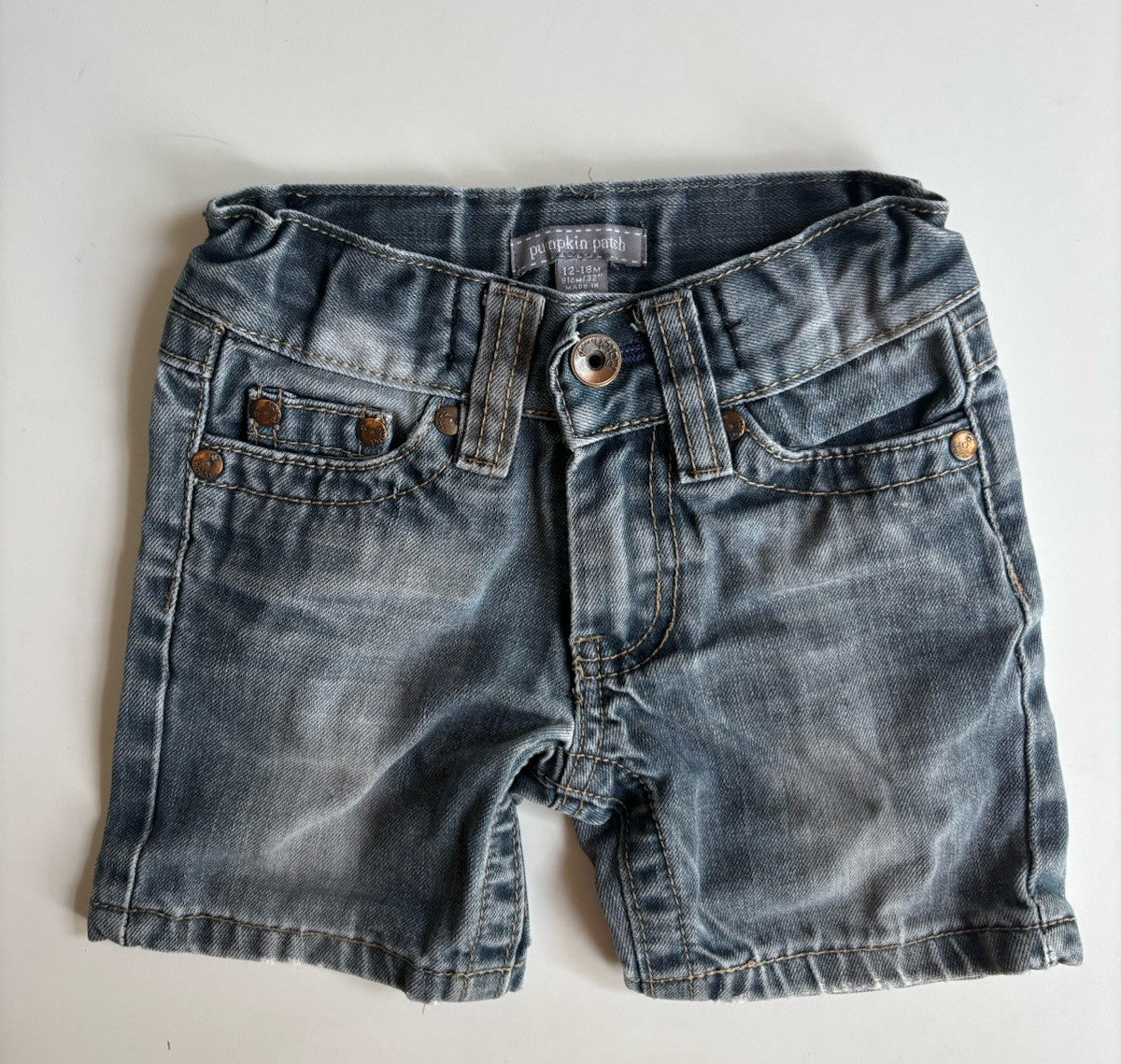 Pumpkin Patch baby boy size 12-18 months blue grey denim shorts, VGUC