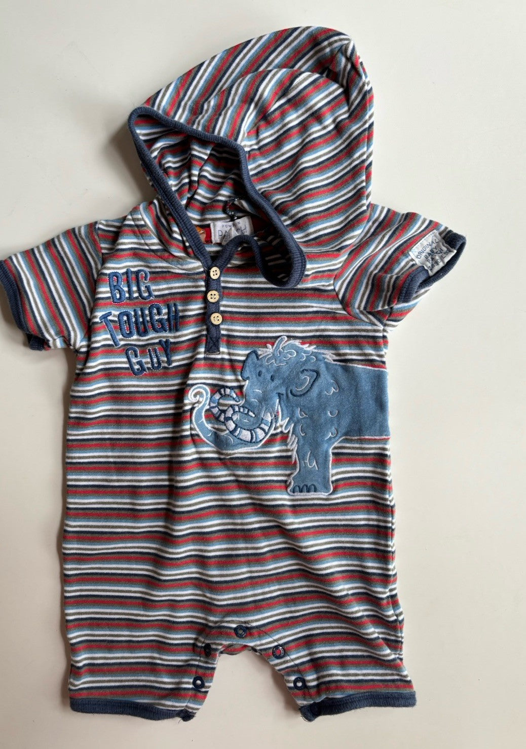 Pumpkin Patch baby boy size 12-18 months blue stripe hooded mammoth romper, VGUC