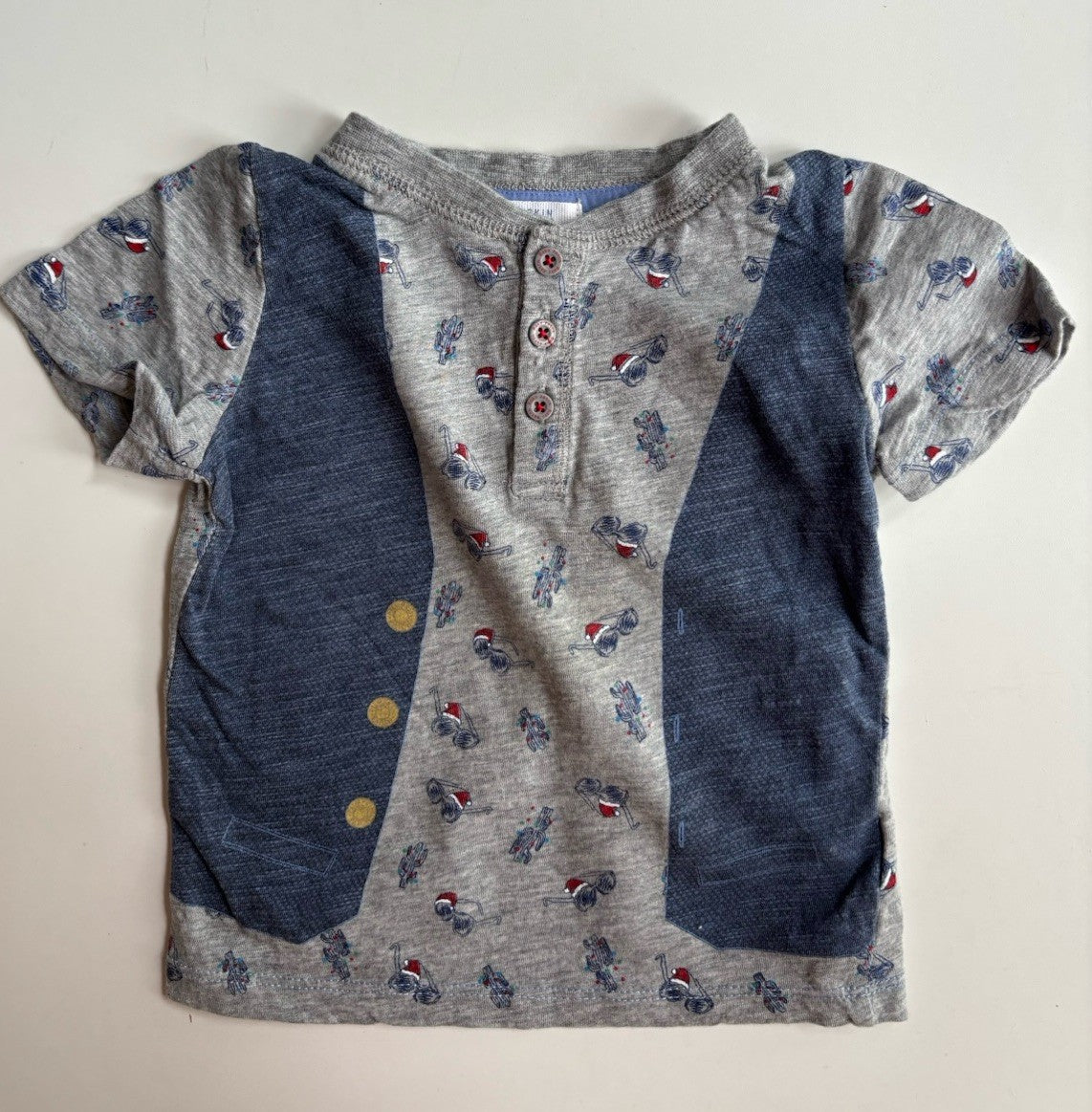 Pumpkin Patch baby boy size 12-18 months grey Christmas sunglasses t-shirt, VGUC