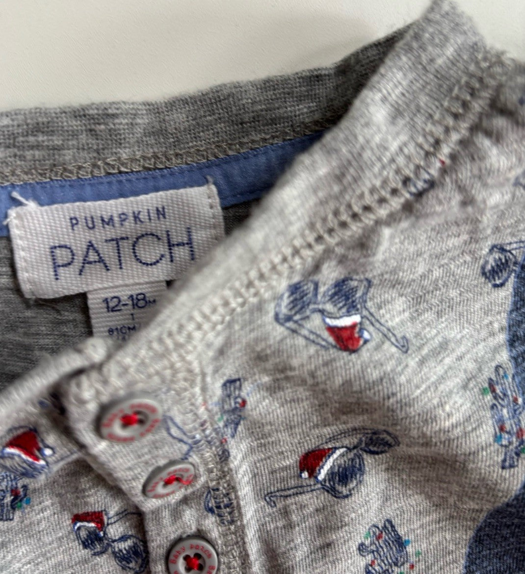 Pumpkin Patch baby boy size 12-18 months grey Christmas sunglasses t-s