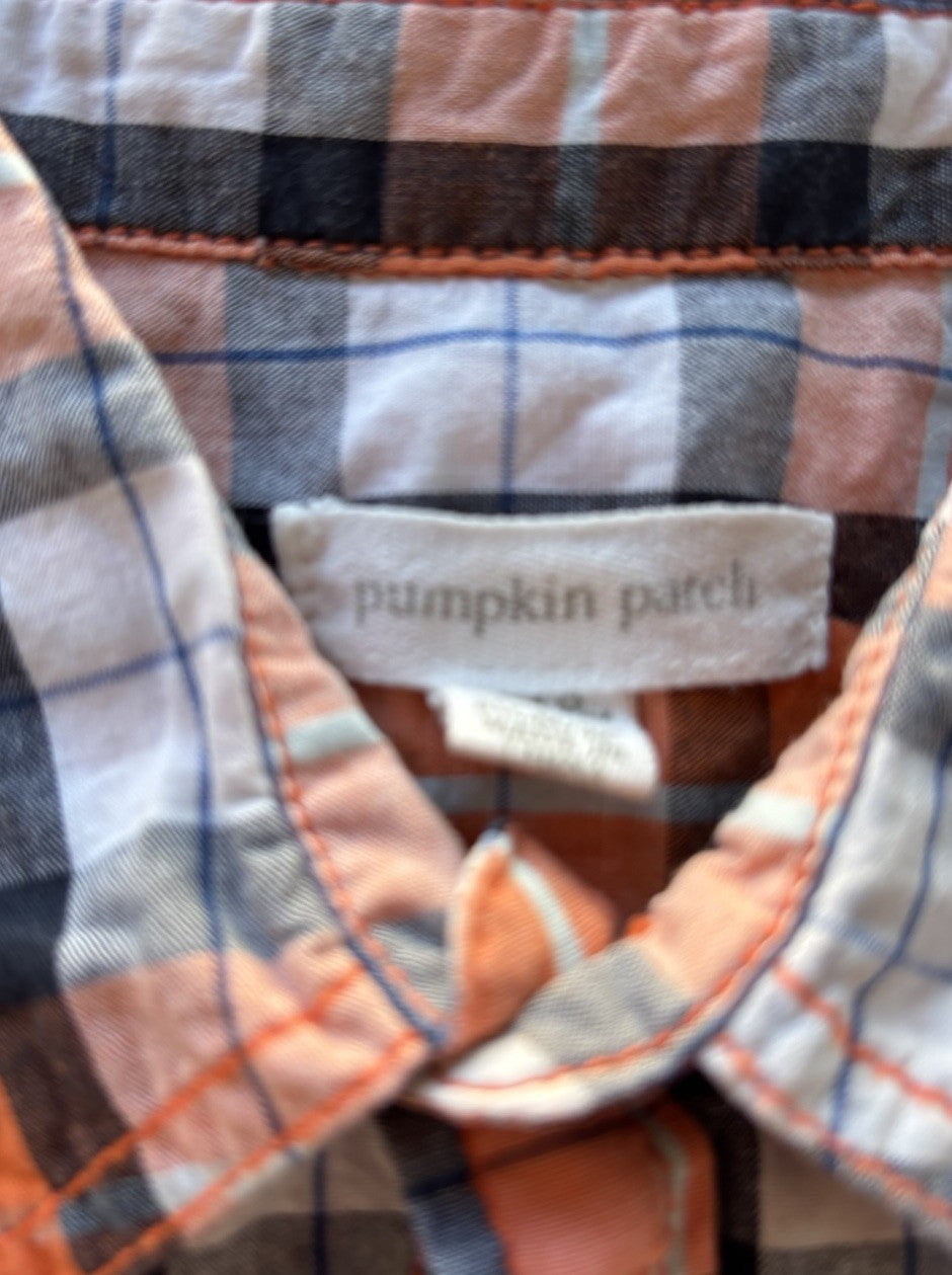 Pumpkin Patch baby boy size 12-18 months orange blue check button up s