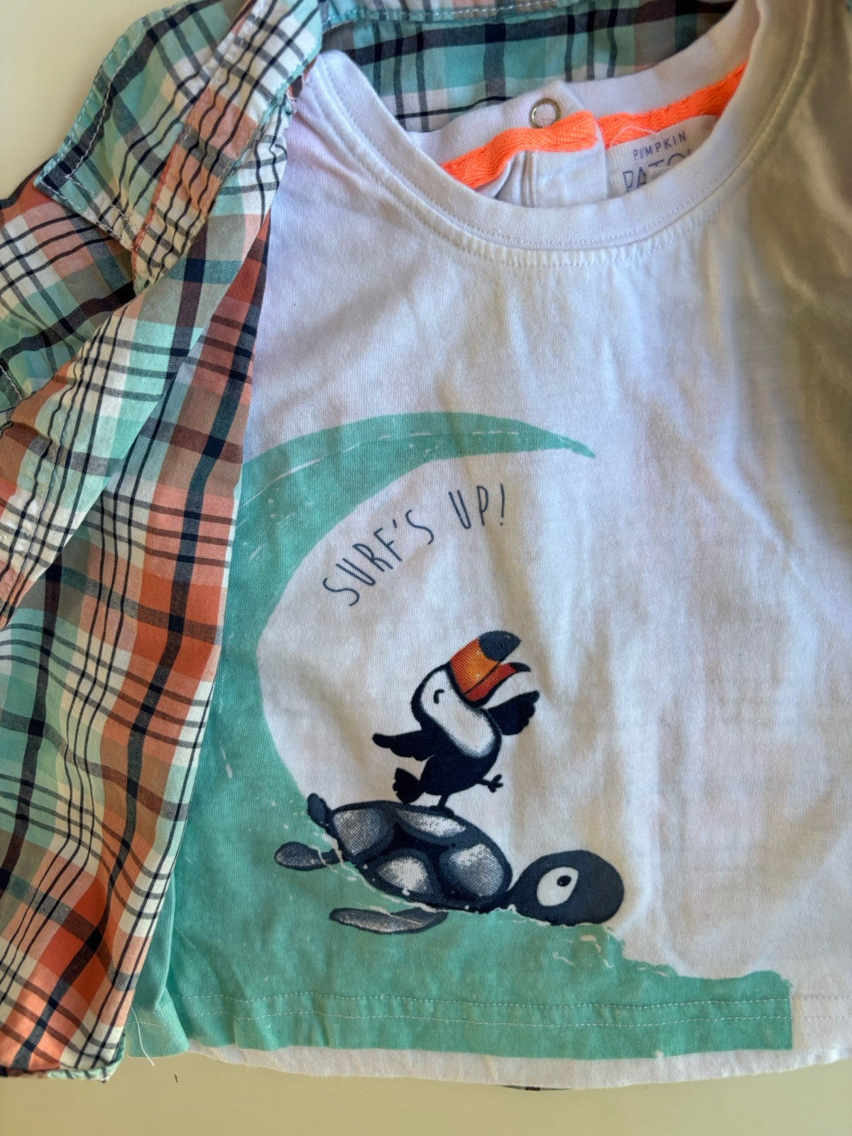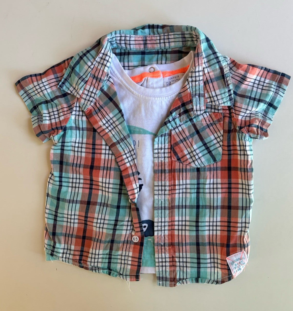 Pumpkin Patch baby boy size 12-18 months orange blue check shirt t-shirt, VGUC