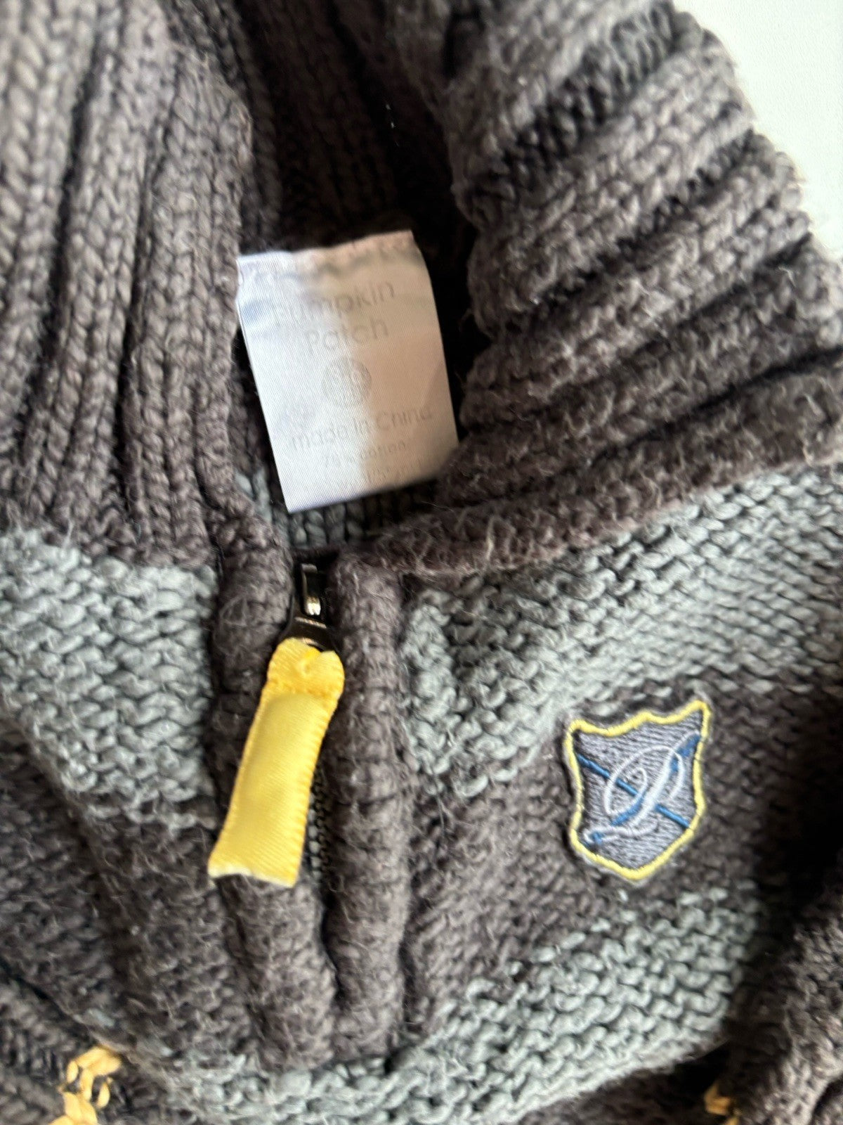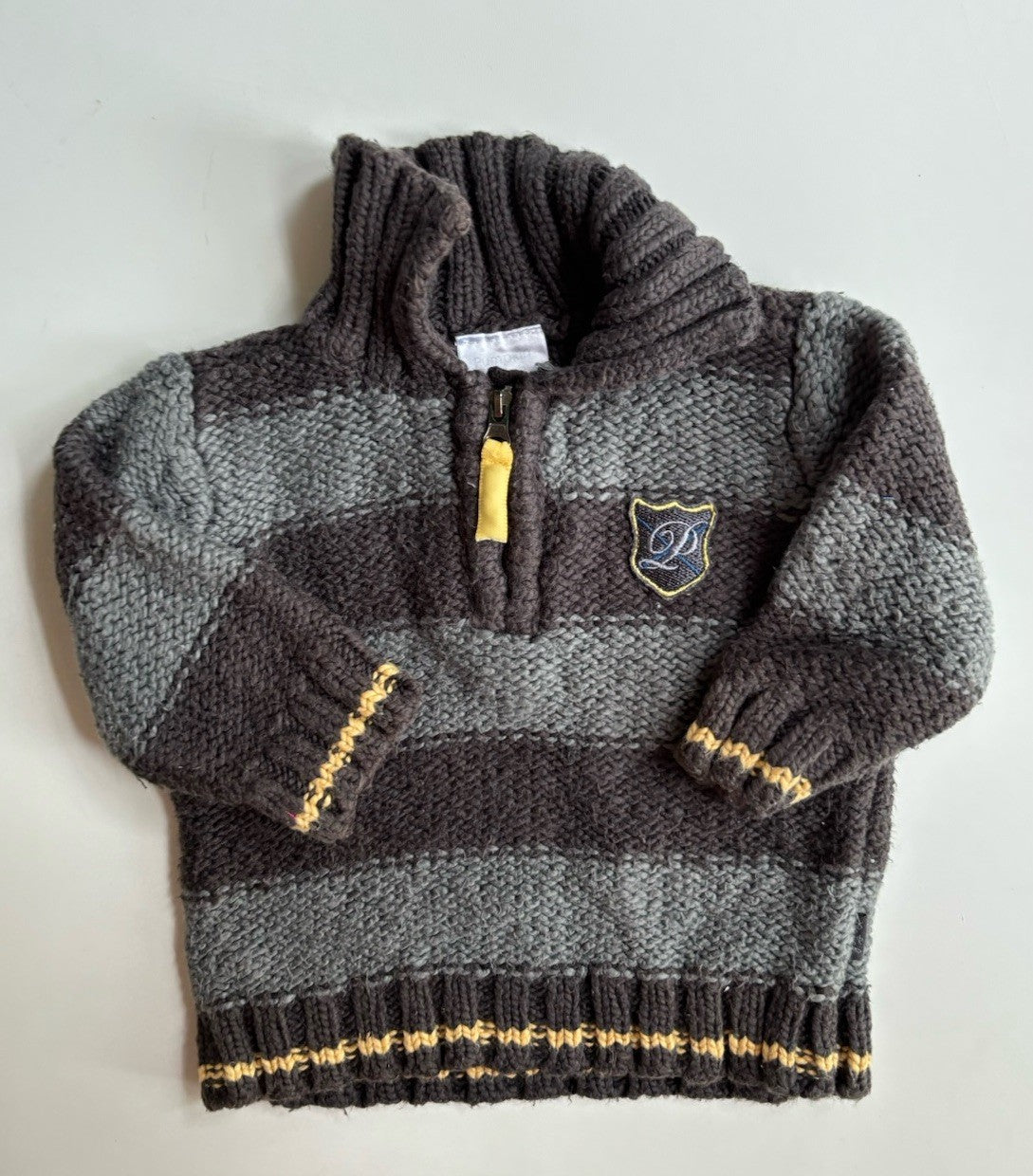 Pumpkin Patch baby boy size 3-6 months grey stripe knitted jumper, VGU