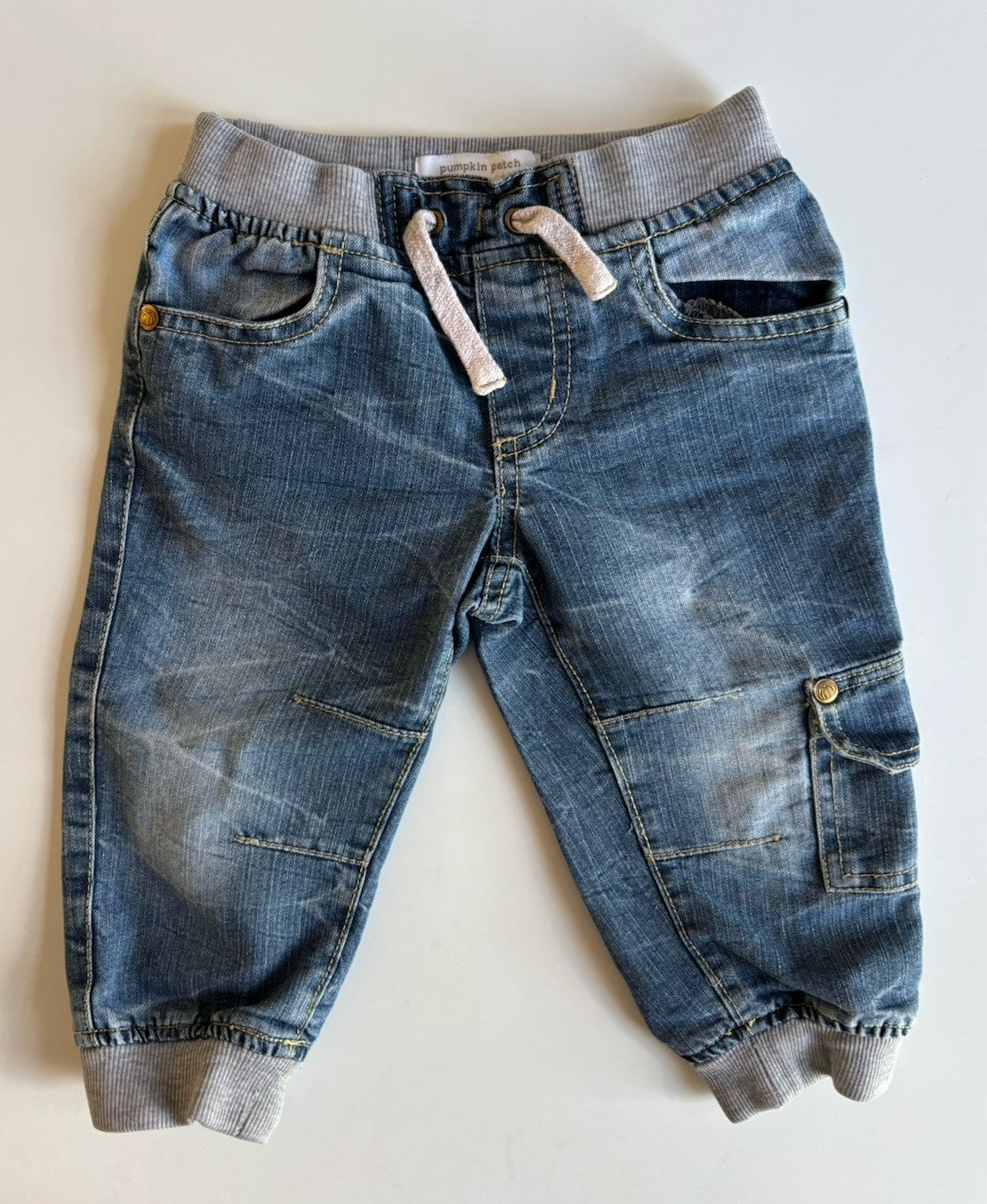 Pumpkin Patch baby boy size 6-12 months blue denim pull on jeans, VGUC