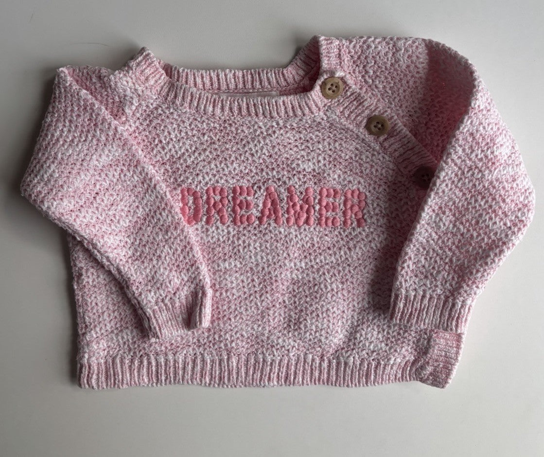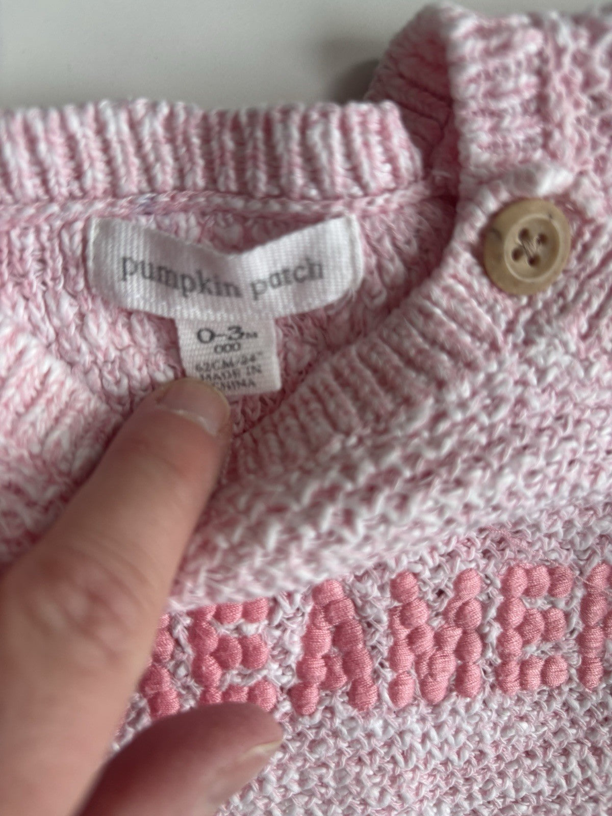 Pumpkin Patch baby girl size 0-3 months pink knitted pullover jumper,