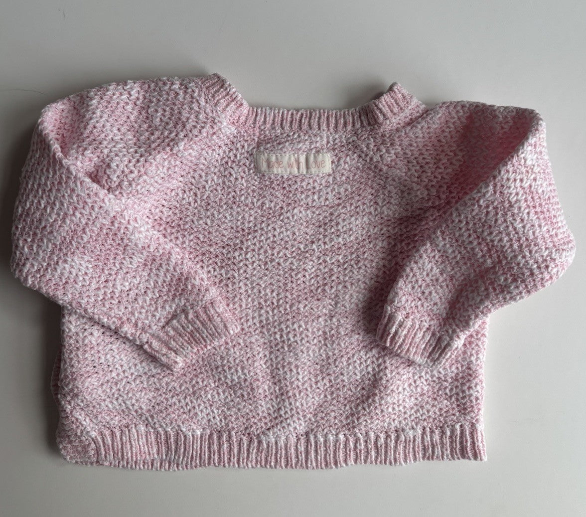 Pumpkin Patch baby girl size 0-3 months pink knitted pullover jumper, VGUC