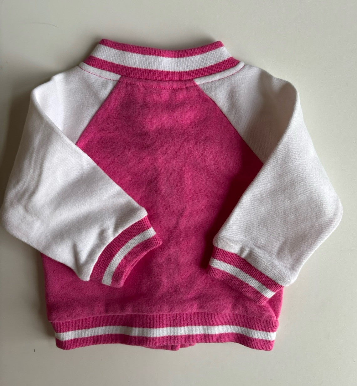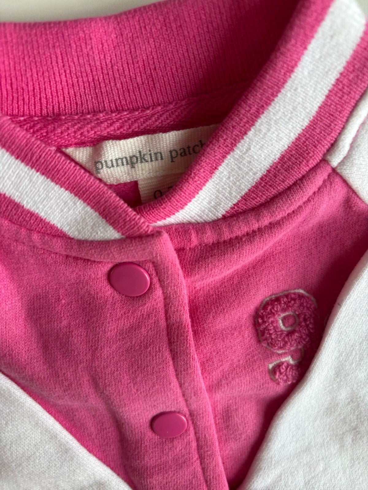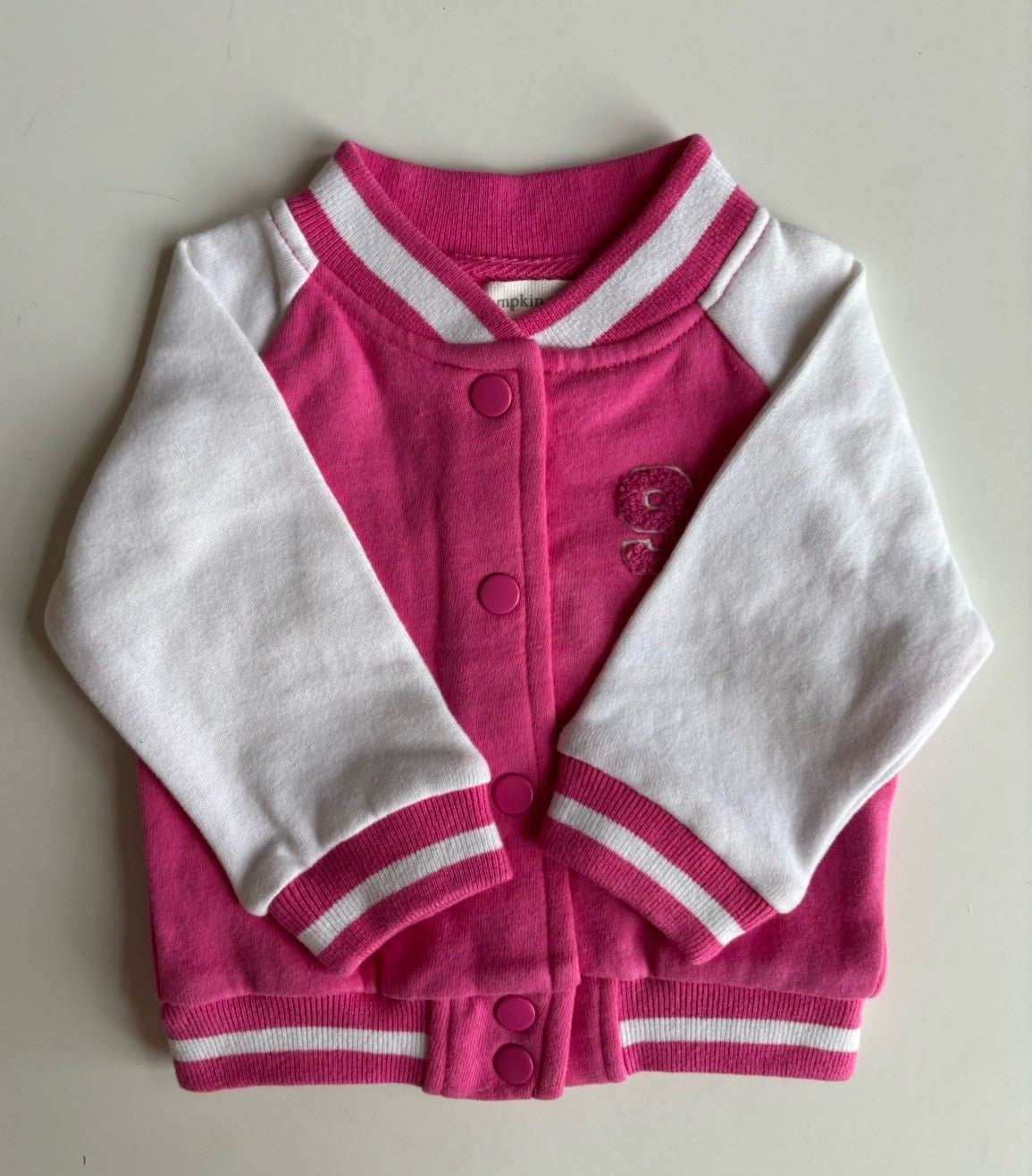 Pumpkin Patch baby girl size 0-3 months pink white button up bomber jacket, VGUC