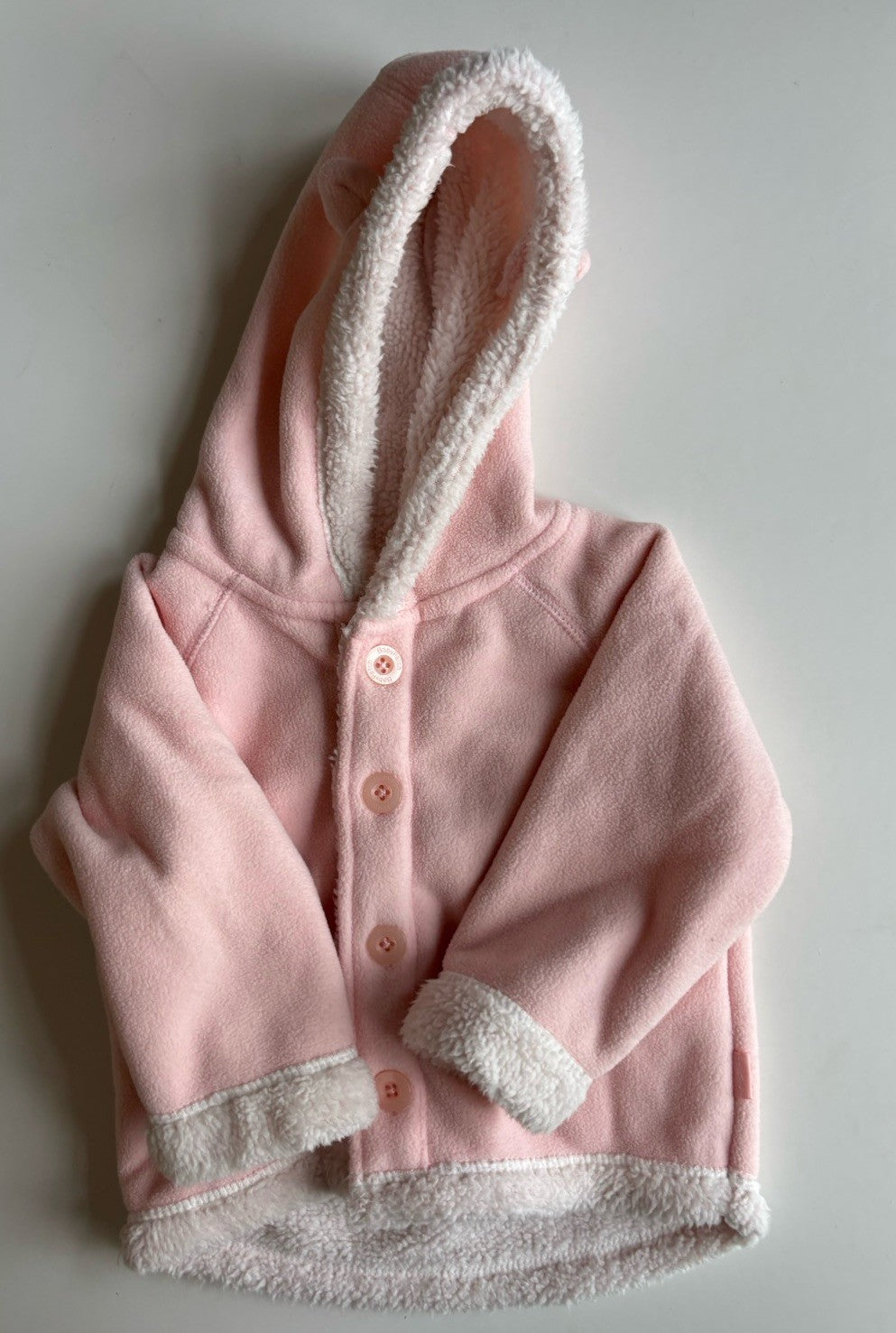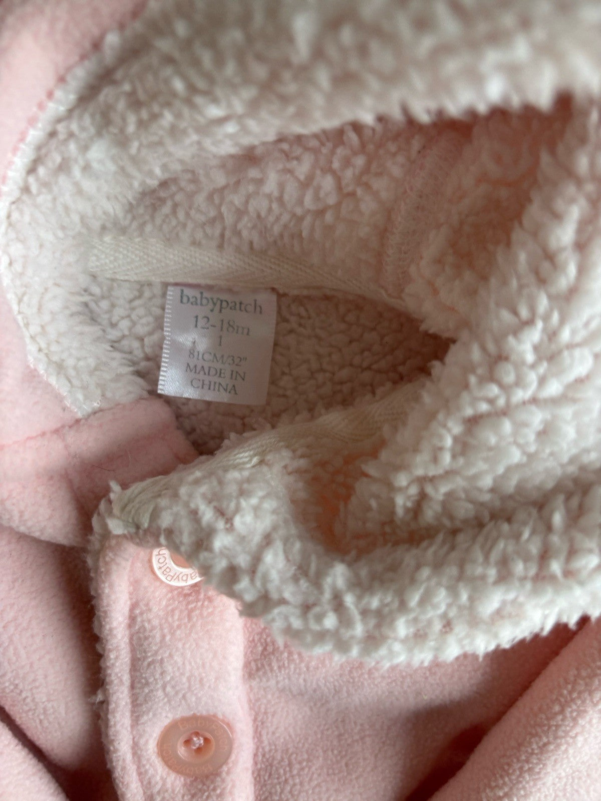 Pumpkin Patch baby girl size 12-18 months pink polar fleece hooded jumper, VGUC