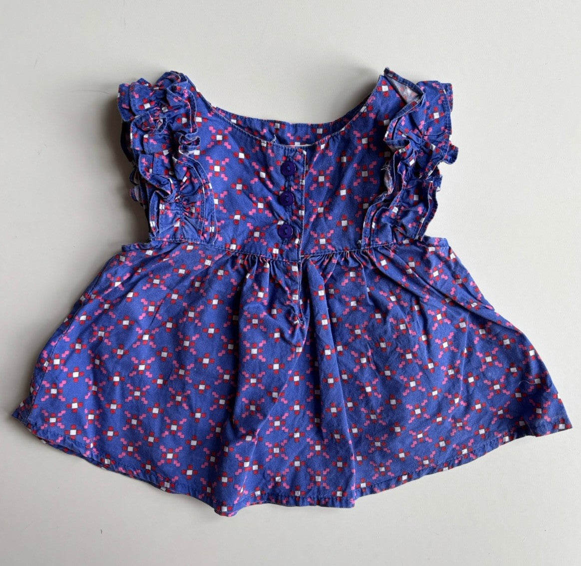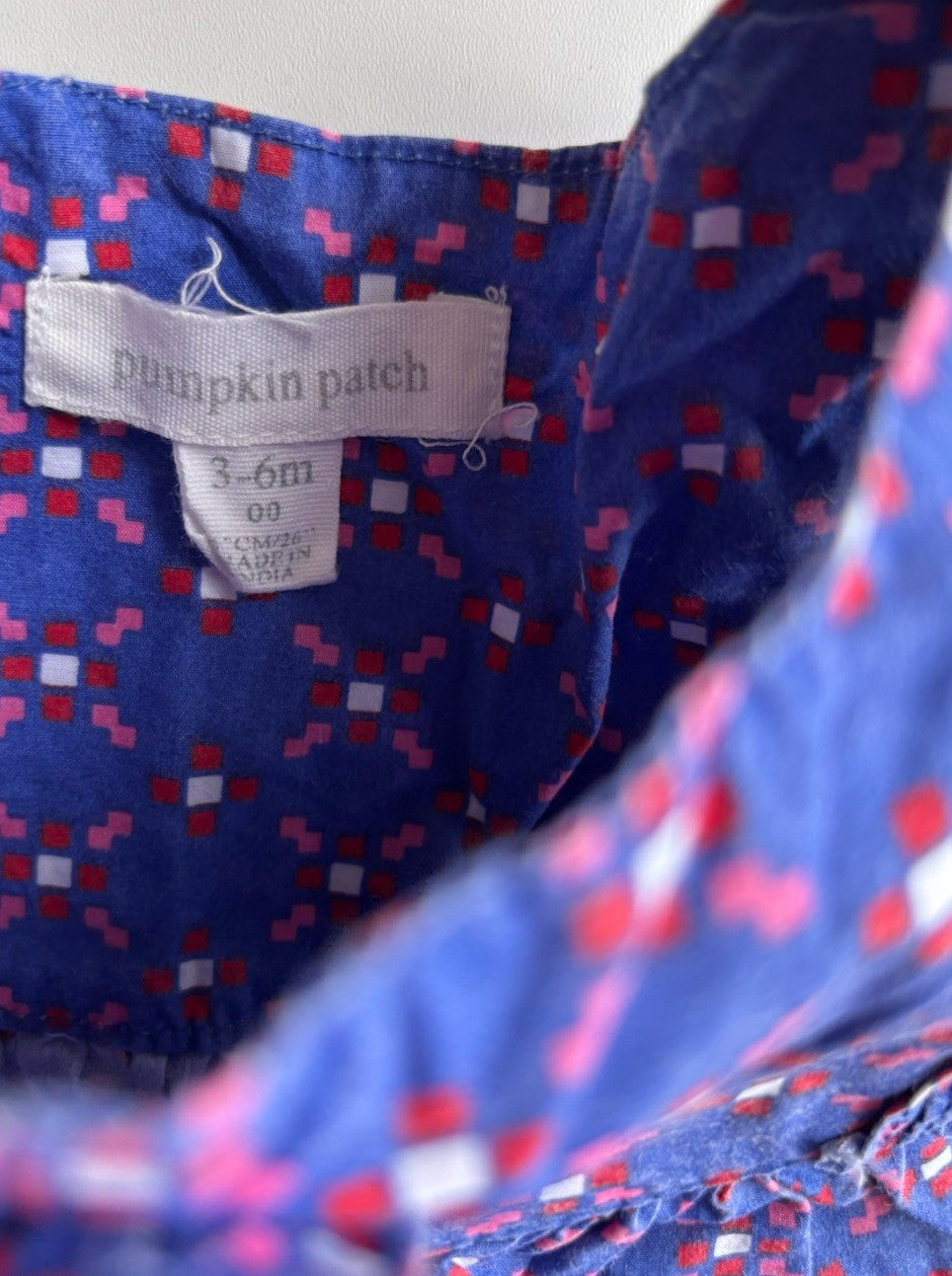 Pumpkin Patch baby girl size 3-6 months blue pink pattern dress, VGUC