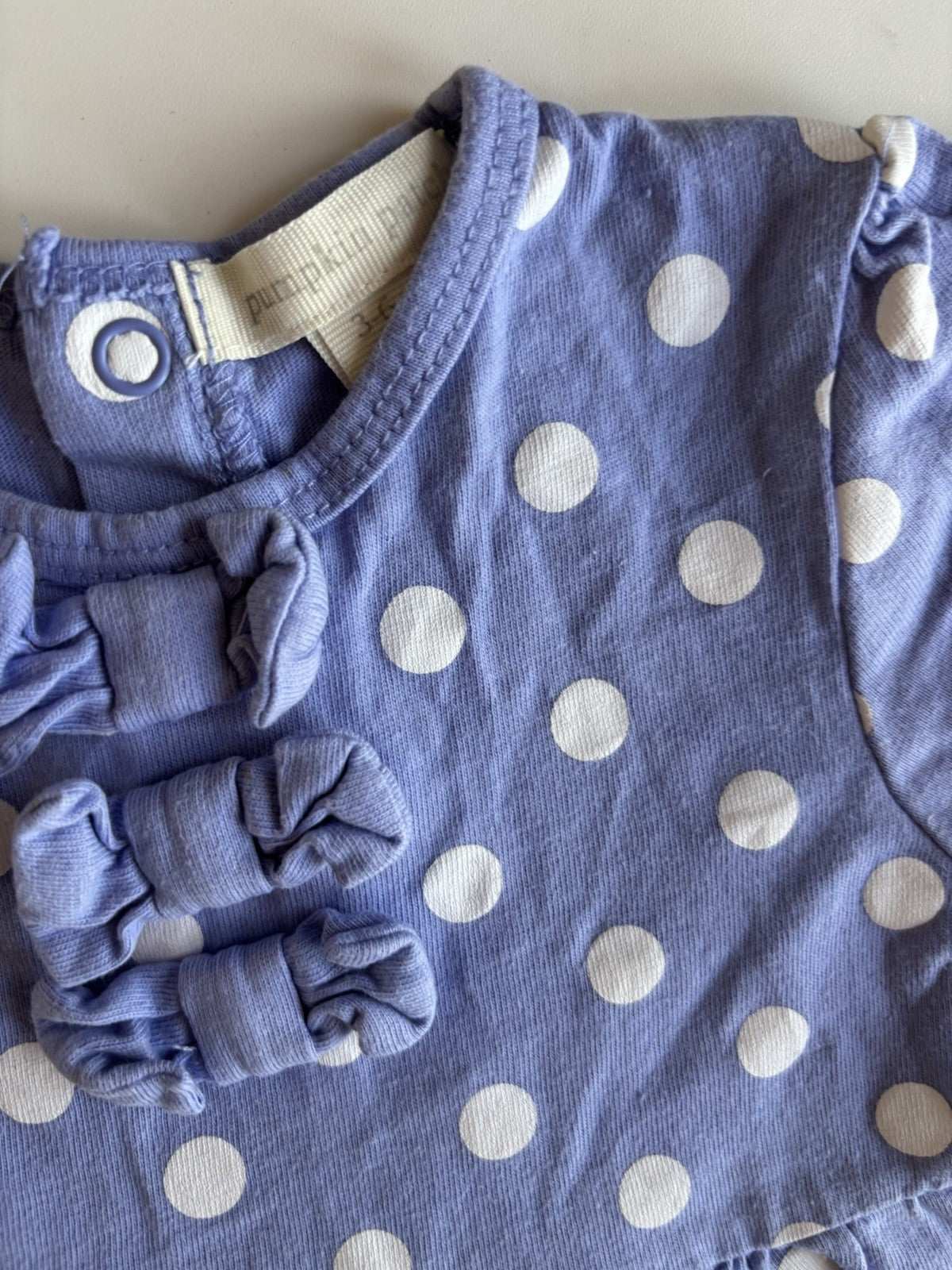 Pumpkin Patch baby girl size 3-6 months blue white spot dress, VGUC