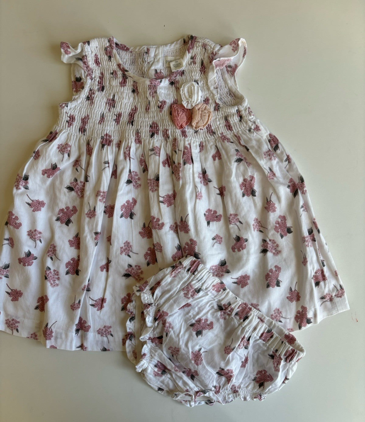 Pumpkin Patch baby girl size 3-6 months pink floral smocked dress, VGU