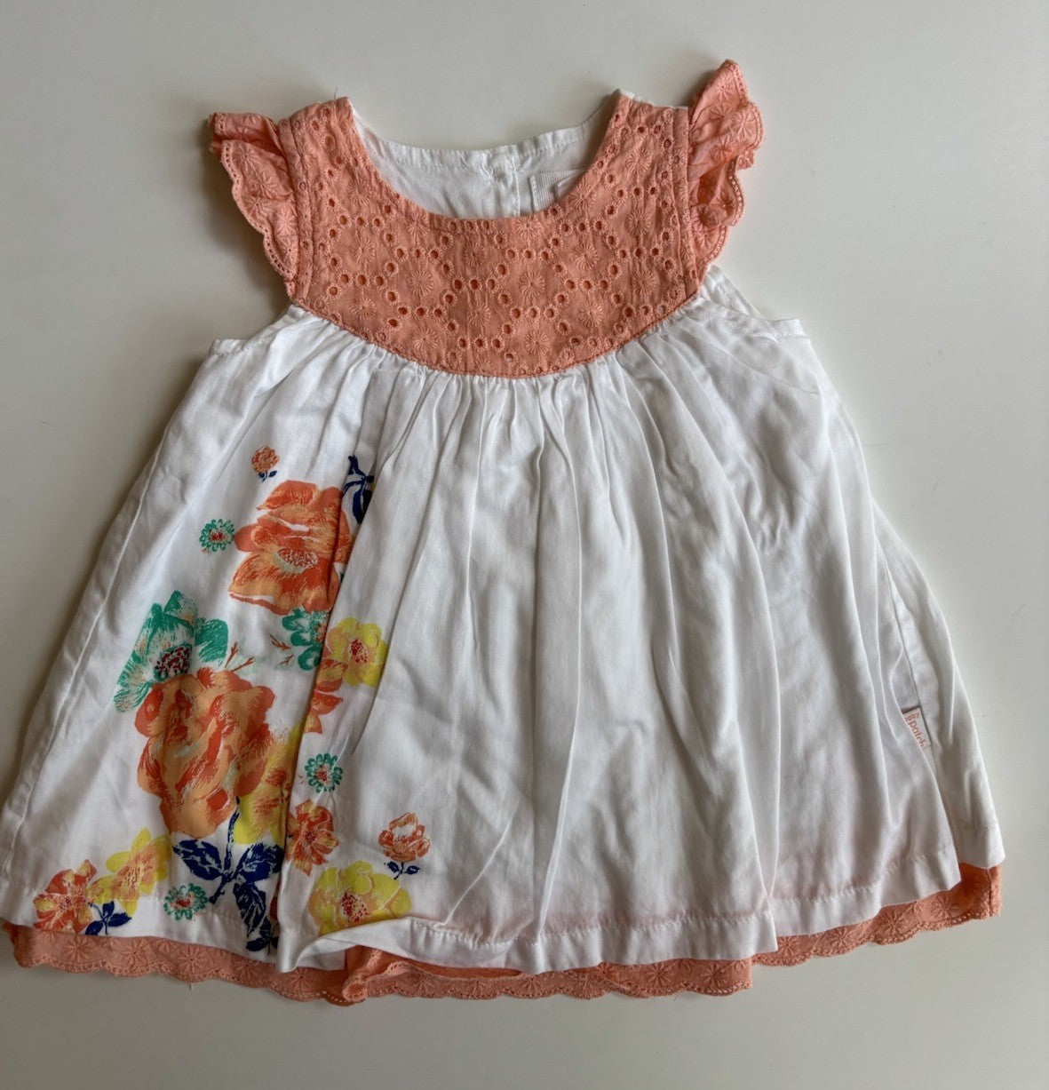 Pumpkin Patch baby girl size 3-6 months white pink floral dress, VGUC
