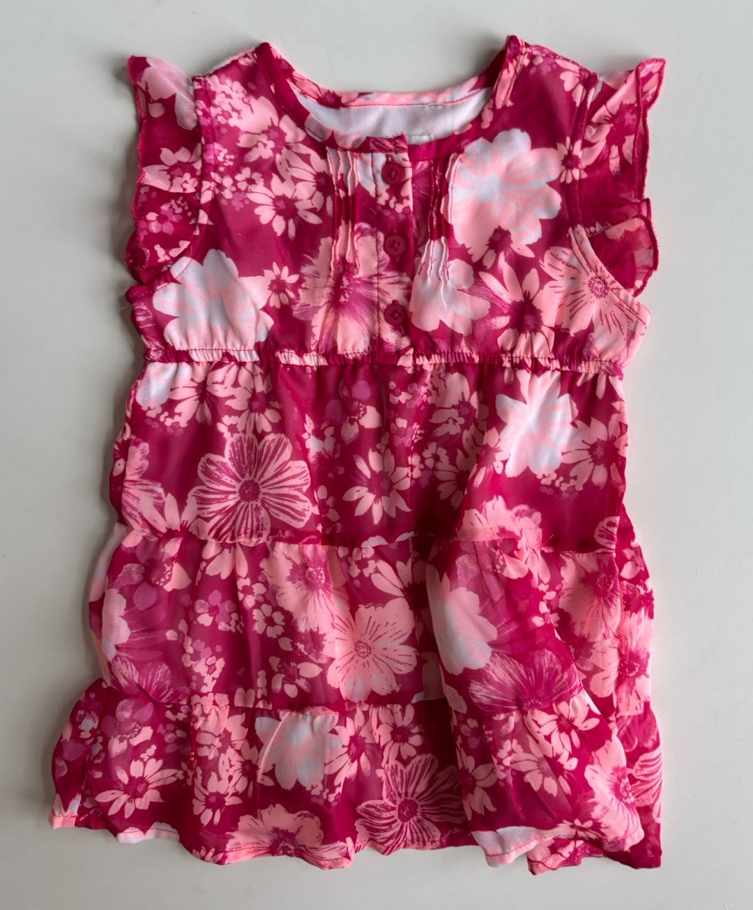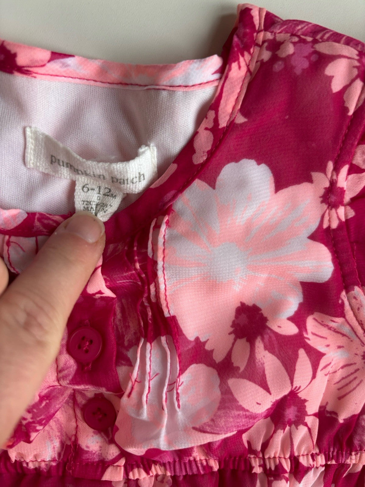 Pumpkin Patch baby girl size 6-12 months pink floral short sleeve dress, VGUC
