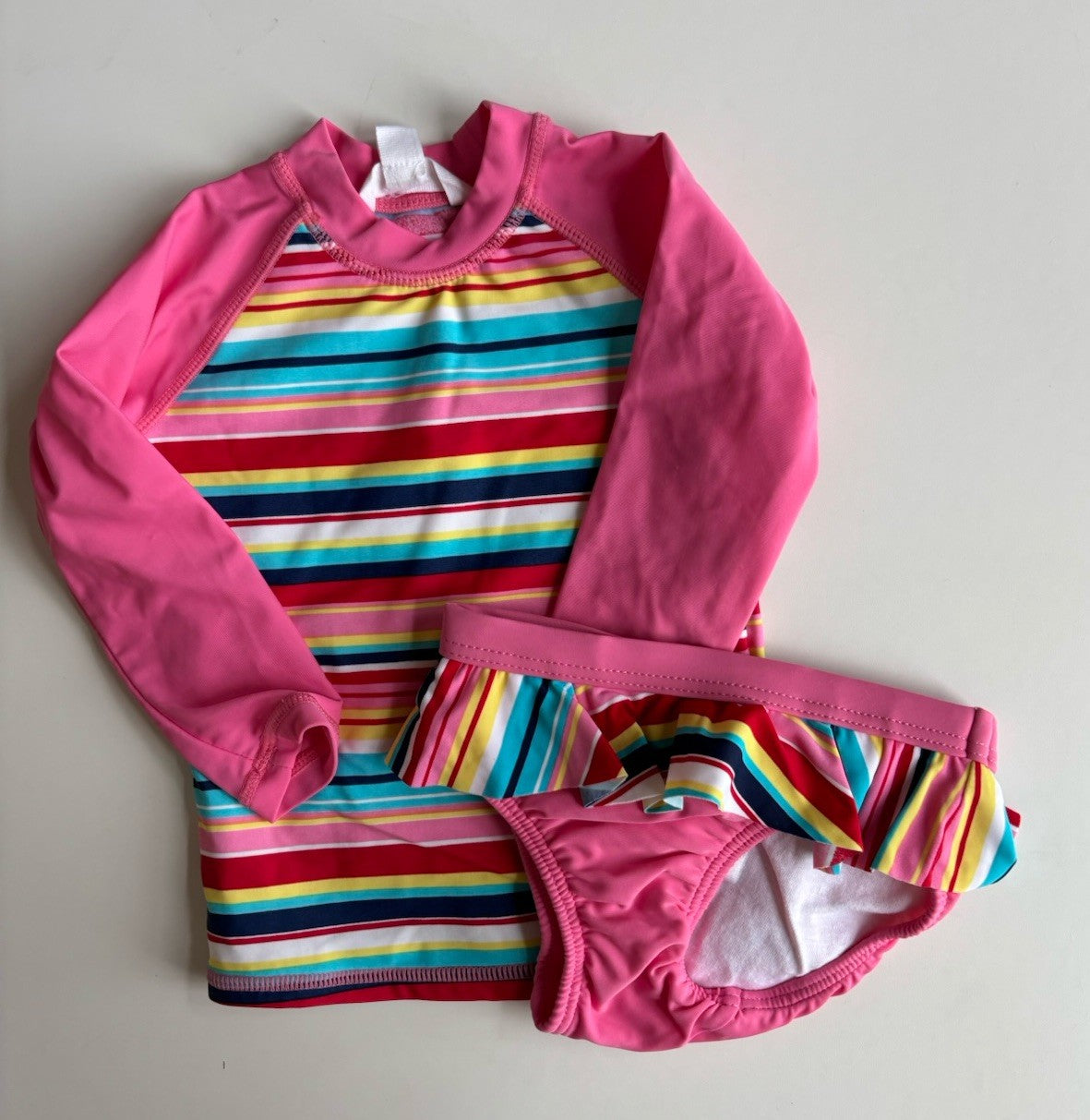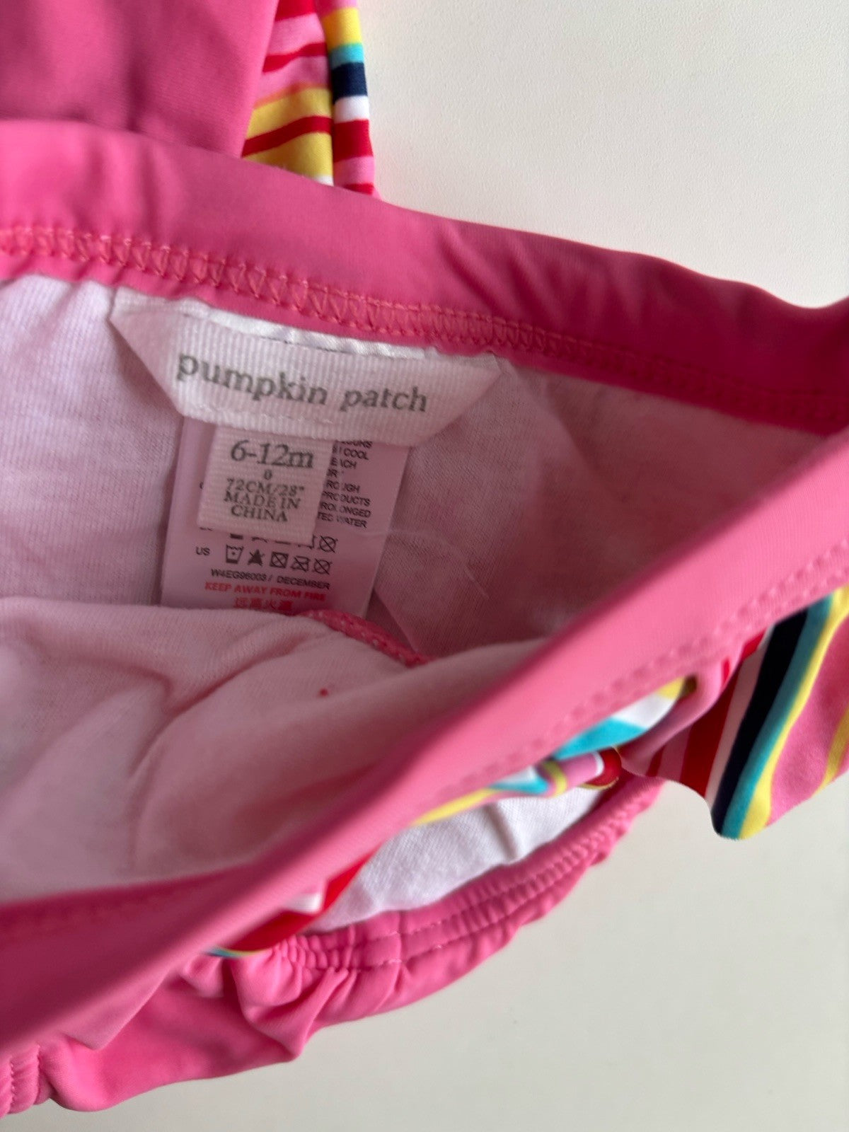 Pumpkin Patch baby girl size 6-12 months pink stripe bathers swim set, VGUC