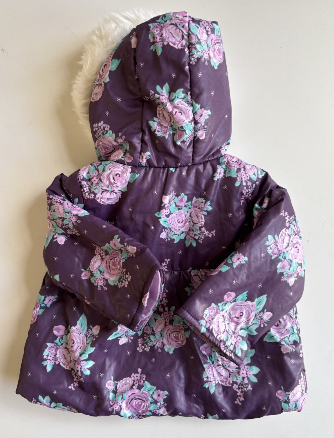 Pumpkin Patch baby girl size 6-12 months purple floral hooded jacket, VGUC