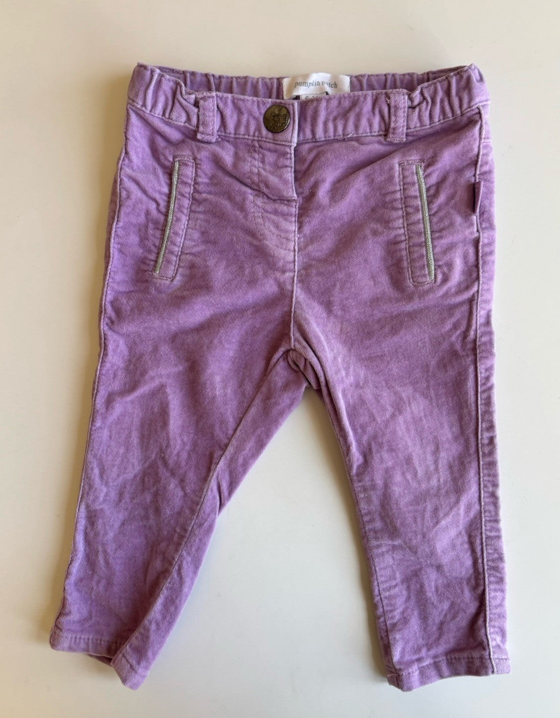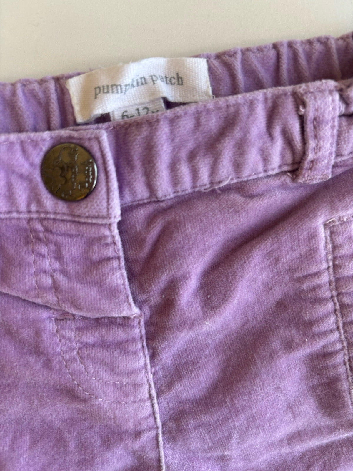 Pumpkin Patch baby girl size 6-12 months purple velvet pull on pants, VGUC