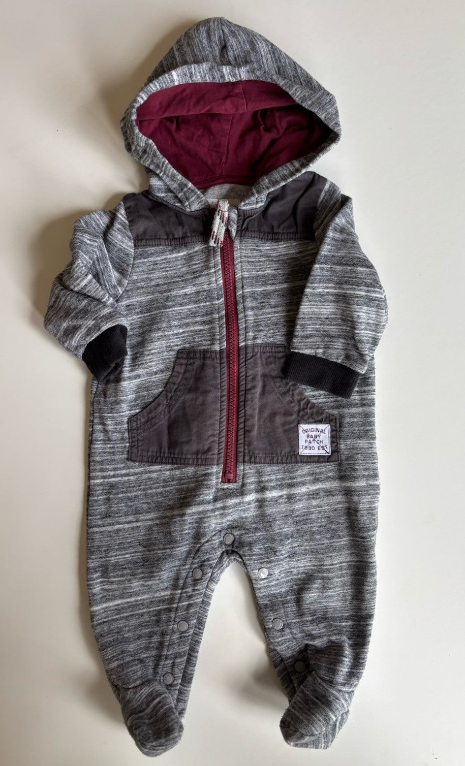 Pumpkin Patch baby size 3-6 months grey hooded zip up one-piece, VGUC
