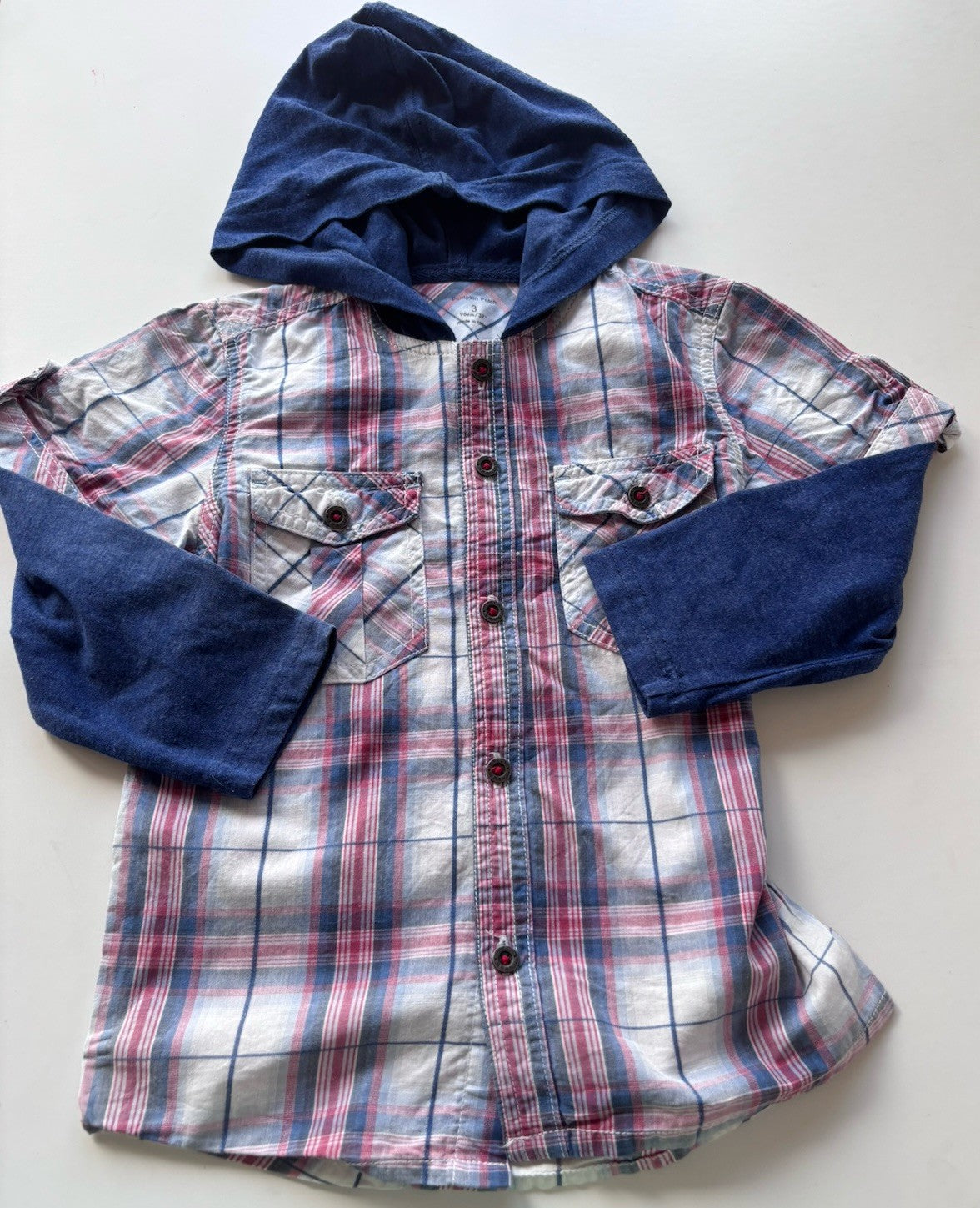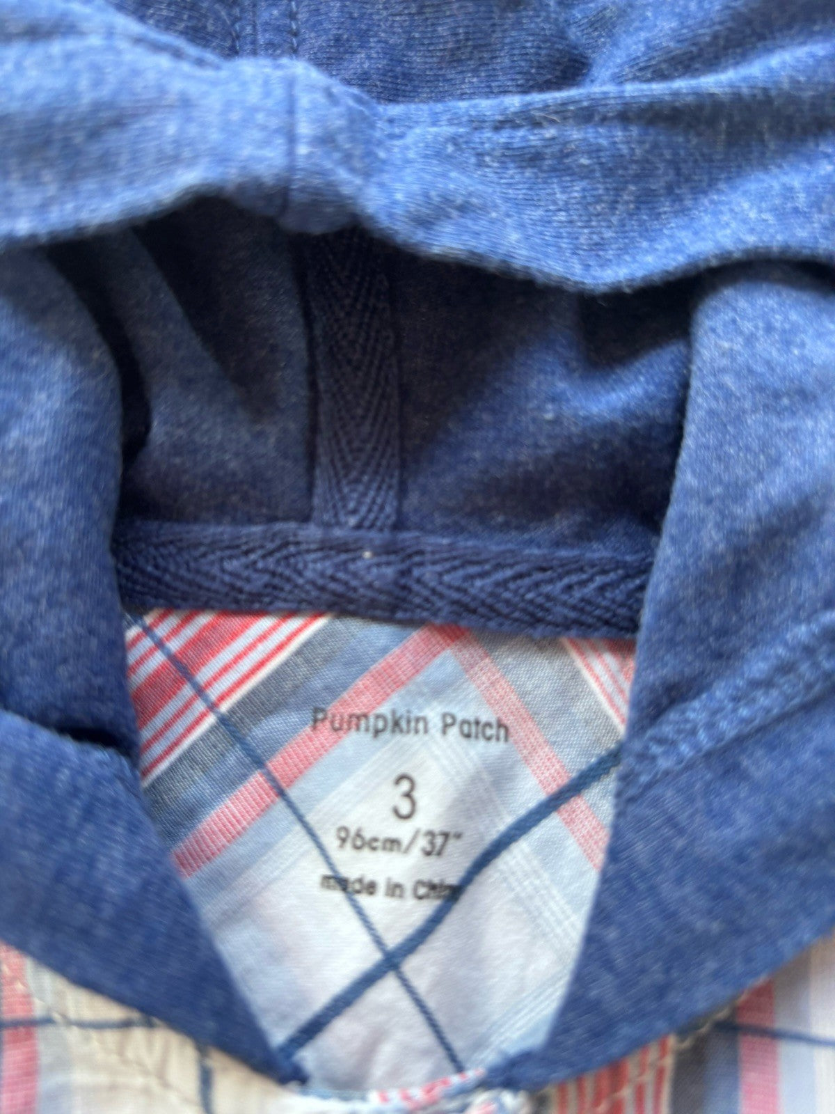 Pumpkin Patch kids boys toddler size 3 blue red check shirt hood, VGUC