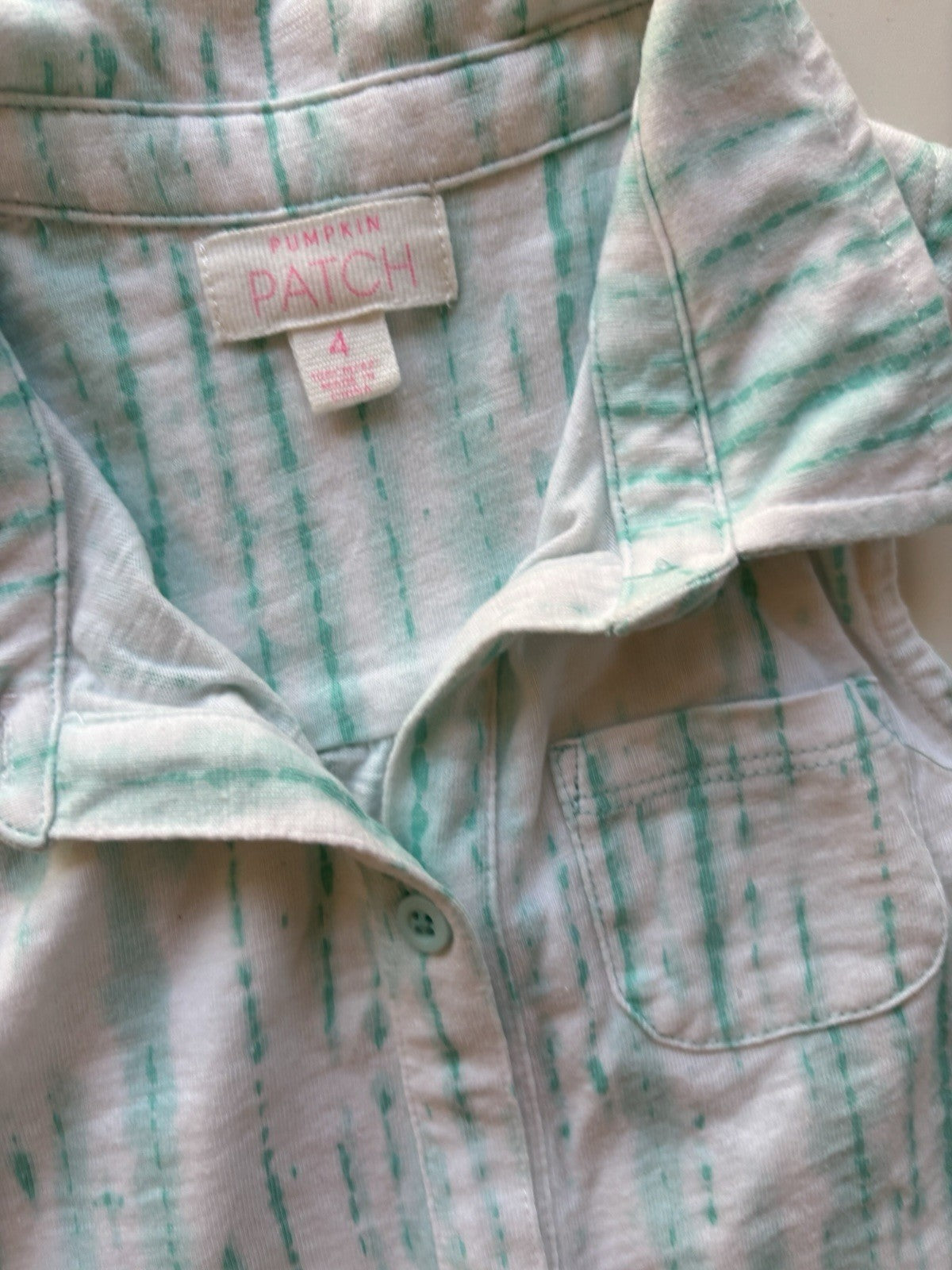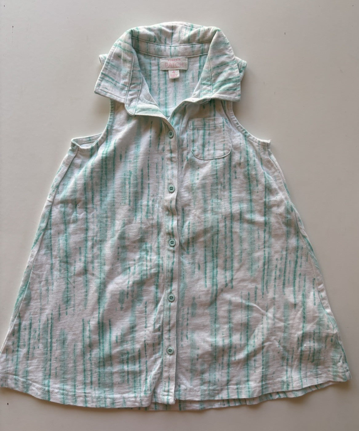 Pumpkin Patch kids girls size 4 green white stripe shirt dress, VGUC