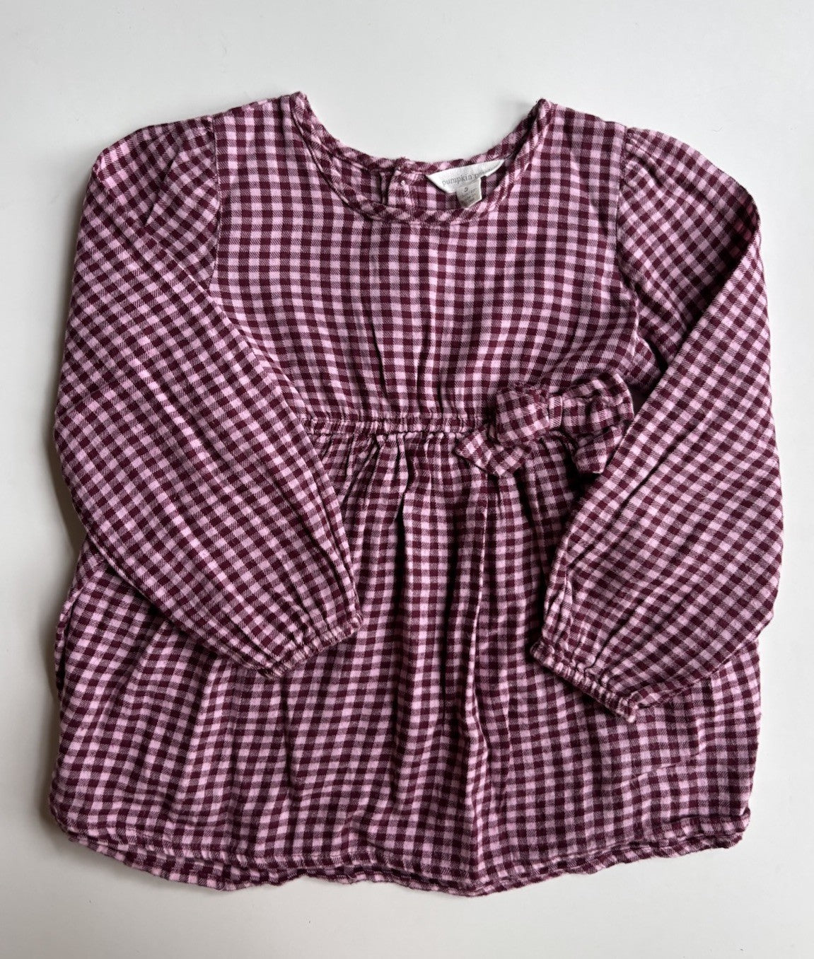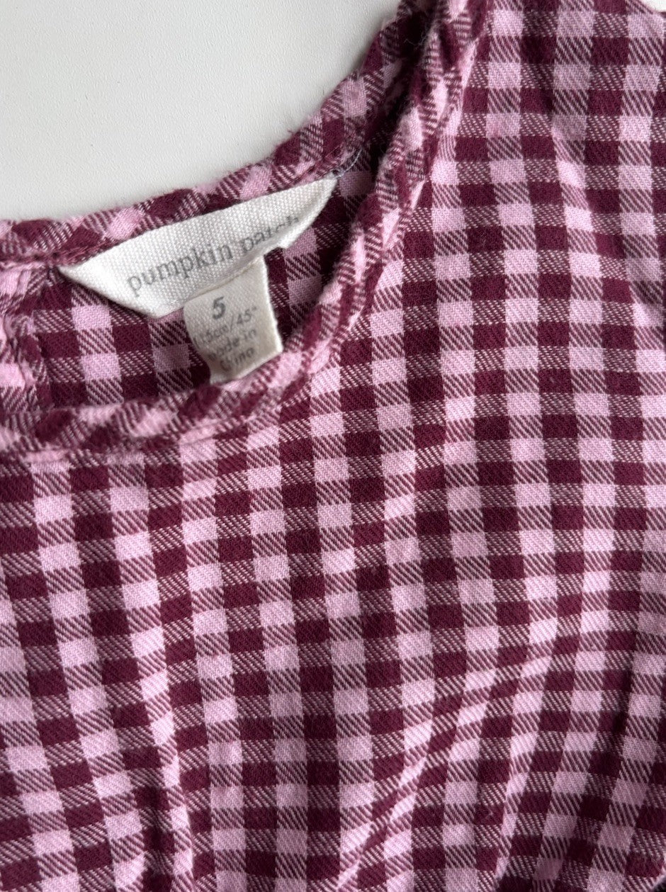 Pumpkin Patch kids girls size 5 purple pink check flounce top, VGUC