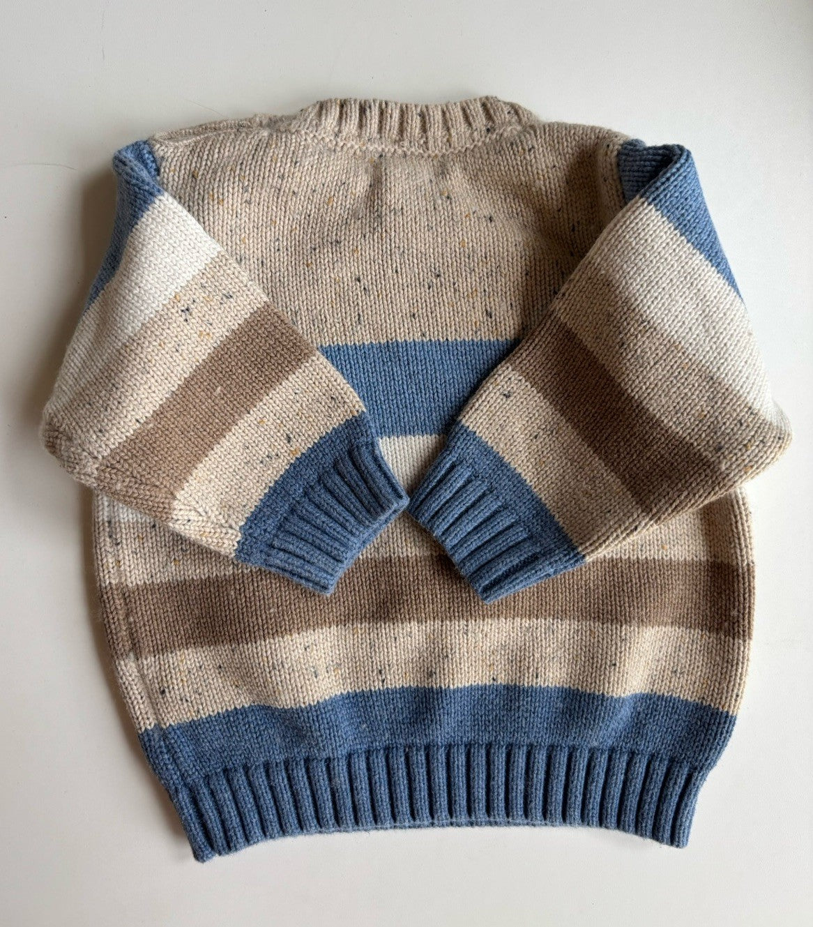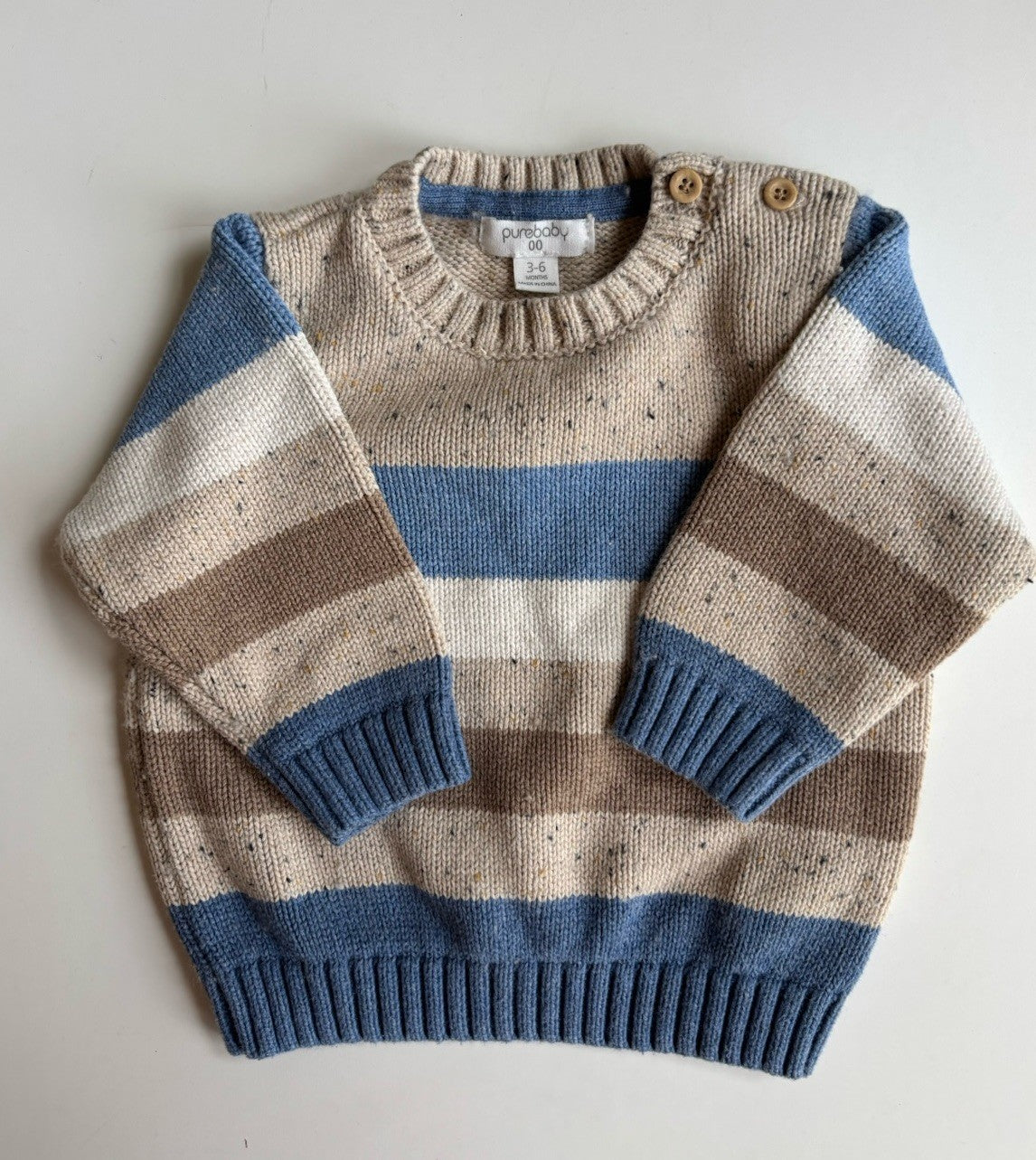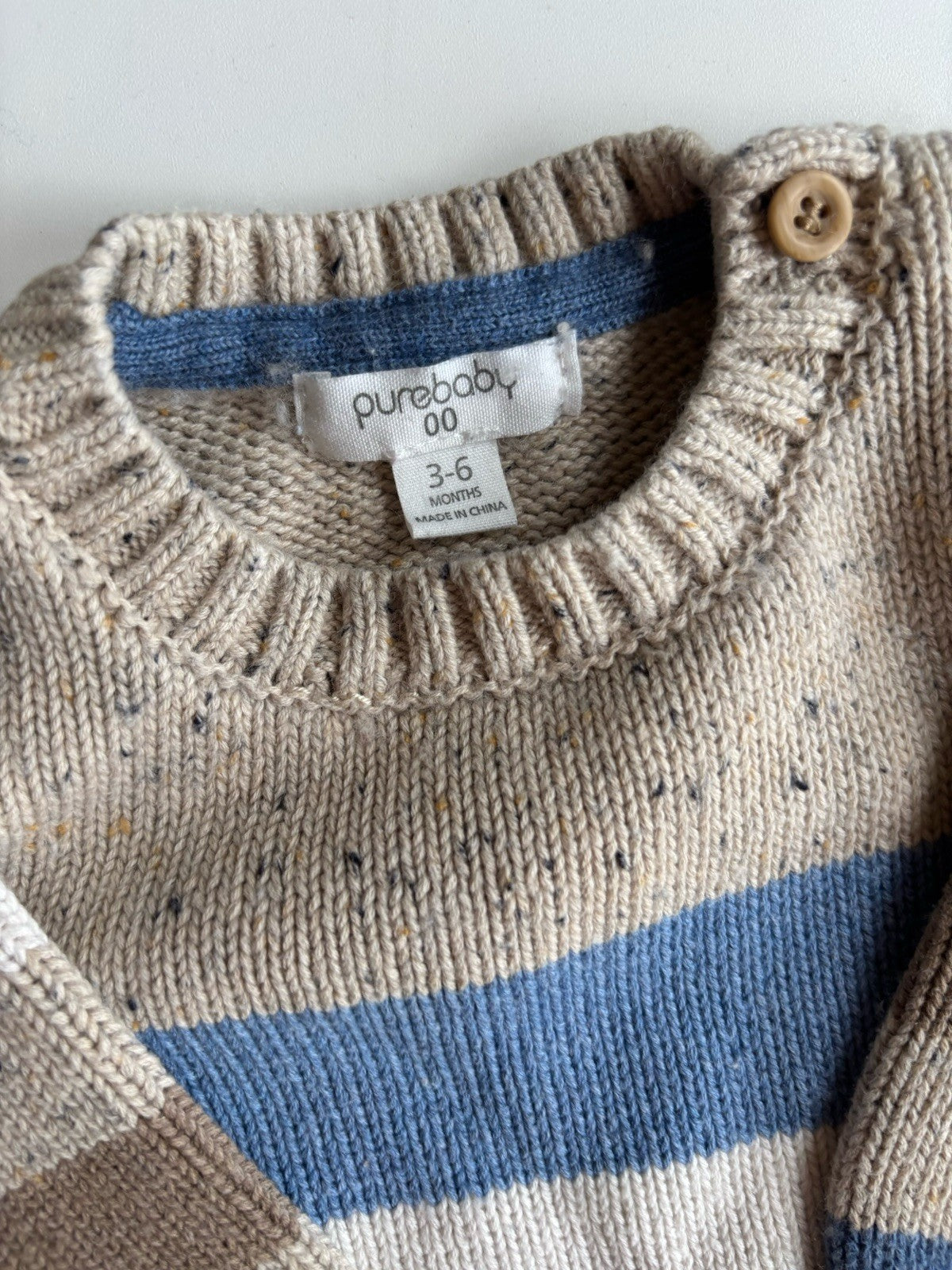 Purebaby baby boy size 3-6 months blue brown knitted pullover jumper,