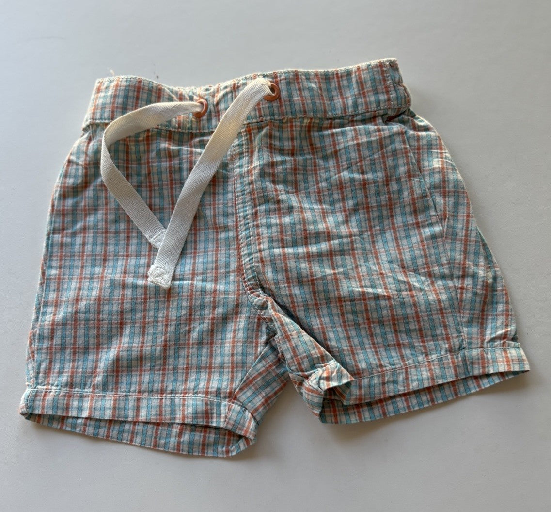 Purebaby baby boy size 3-6 months blue orange check shorts, VGUC