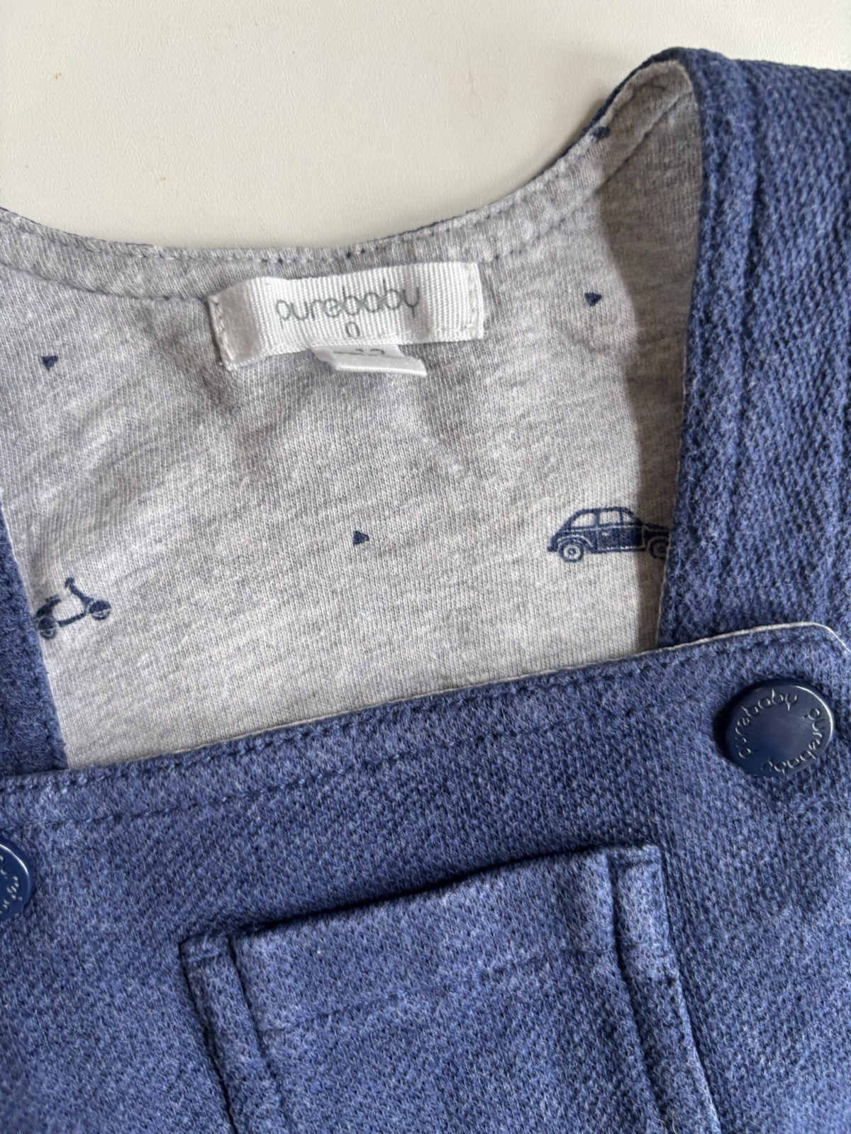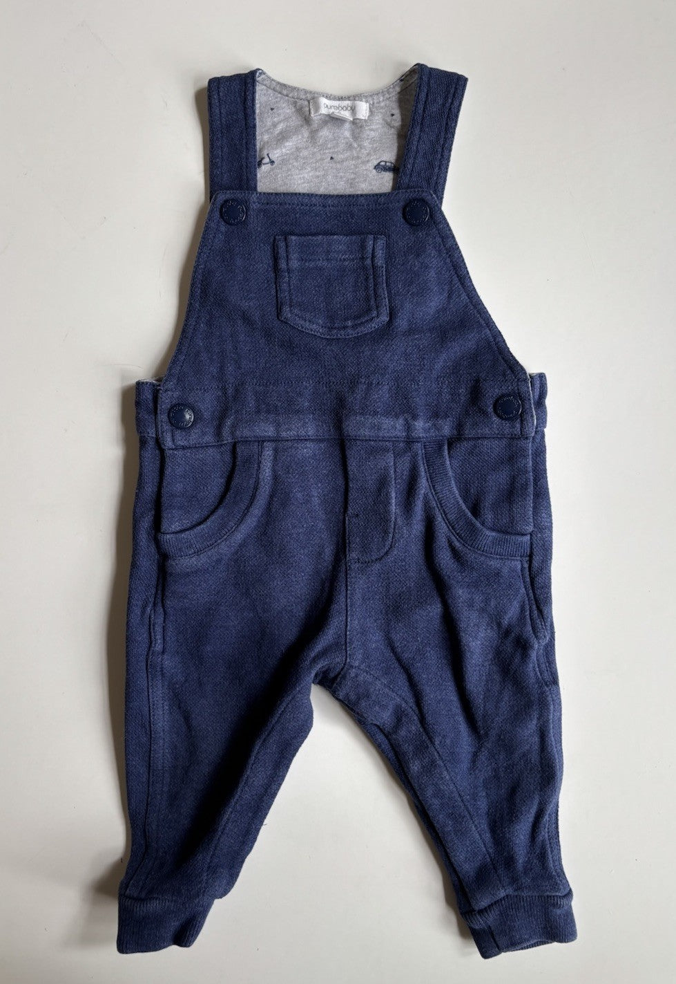 Purebaby baby boy size 6-12 months navy blue overalls one-piece, VGUC