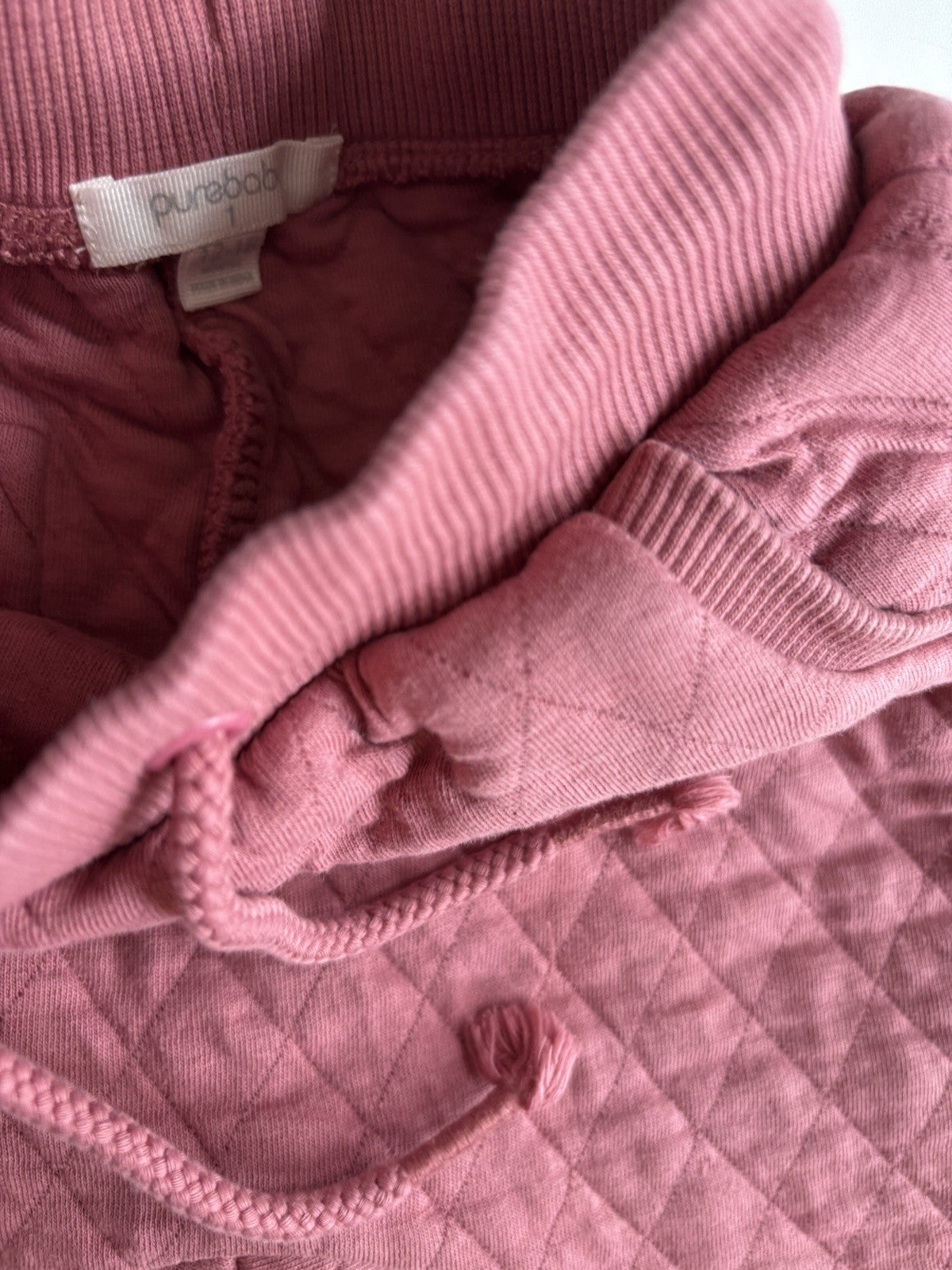 Purebaby baby girl size 12-18 months pink quilted track pants, VGUC
