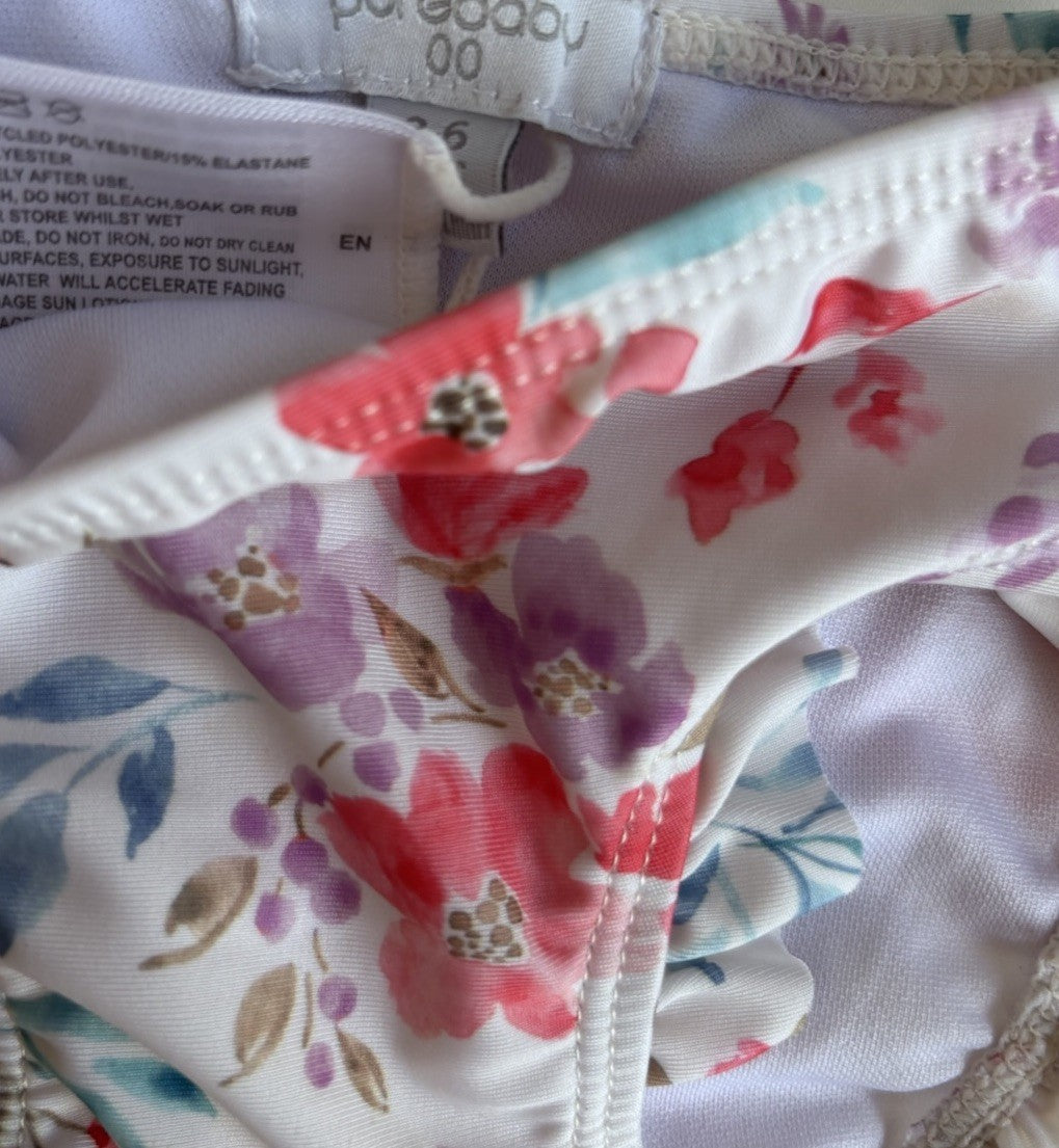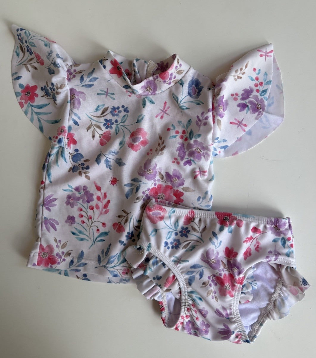 Purebaby baby girl size 3-6 months white pink floral top pants swim se