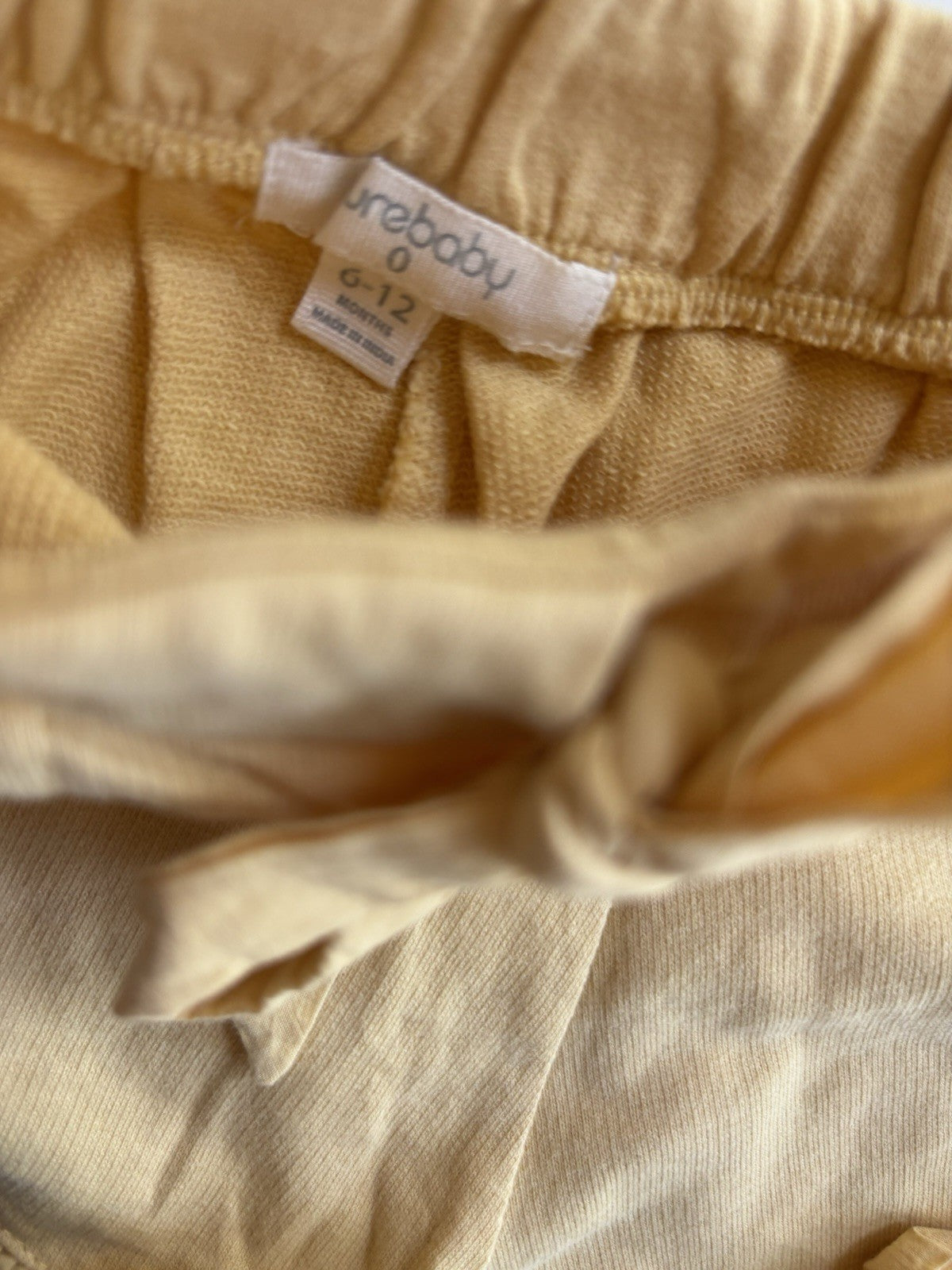 Purebaby baby girl size 6-12 months yellow belted shorts frills, VGUC