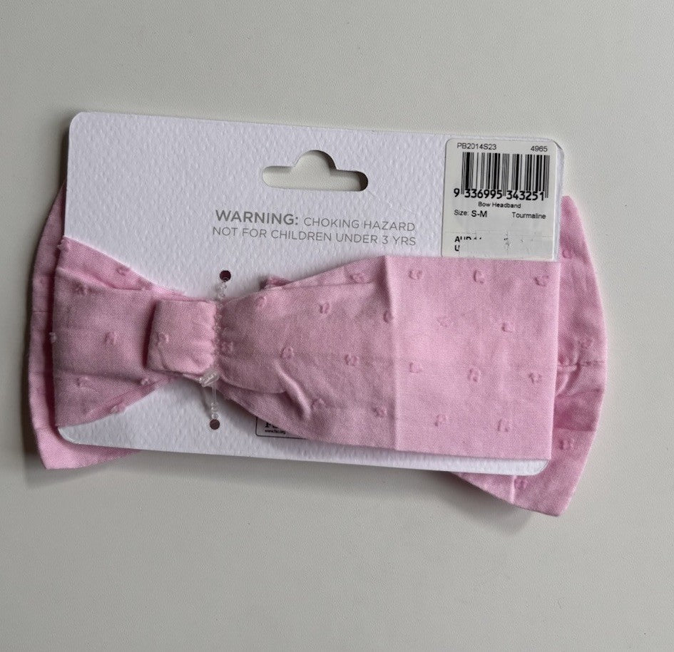 Purebaby baby girl size S/M pink bow headband, BNWT