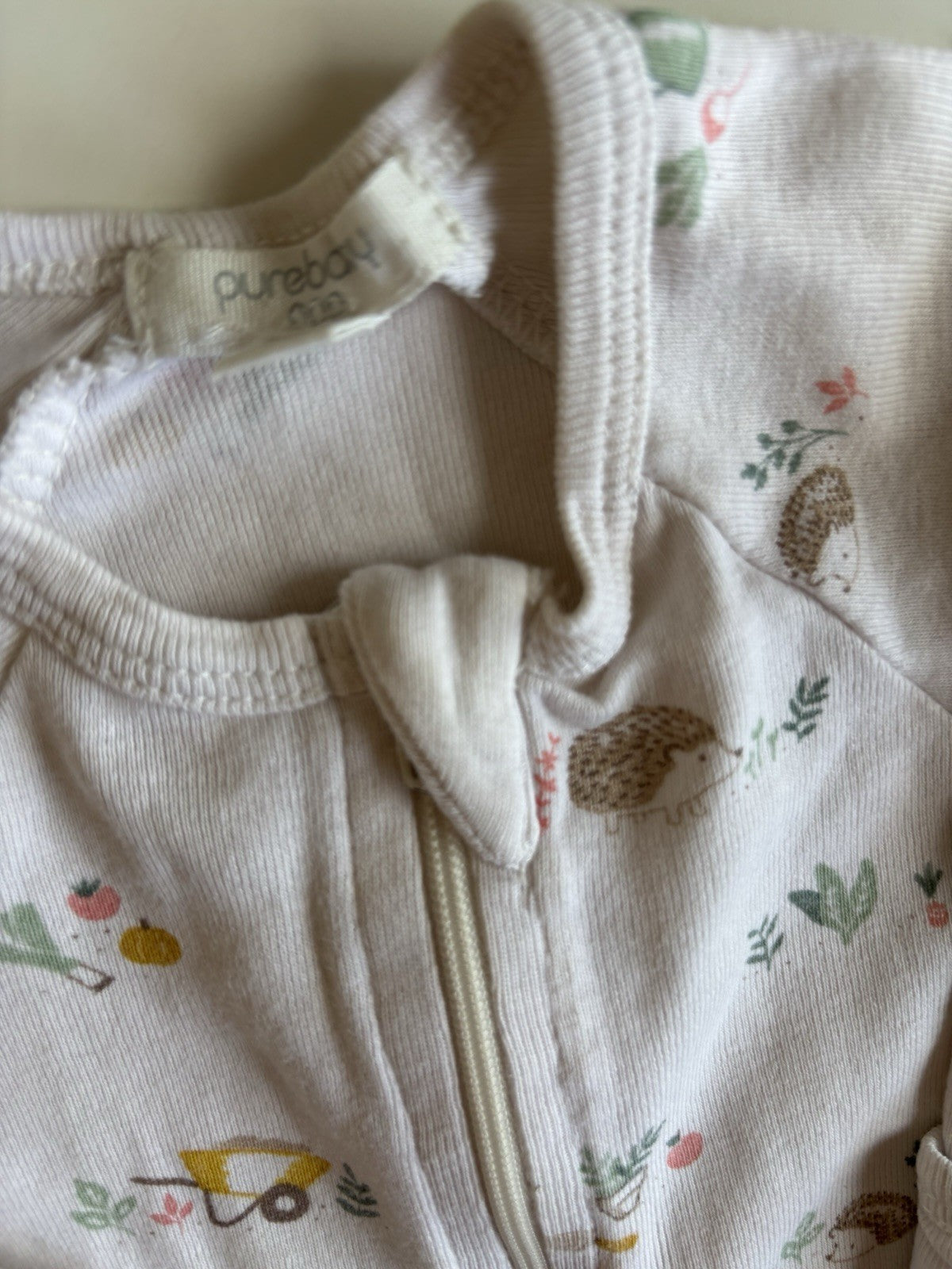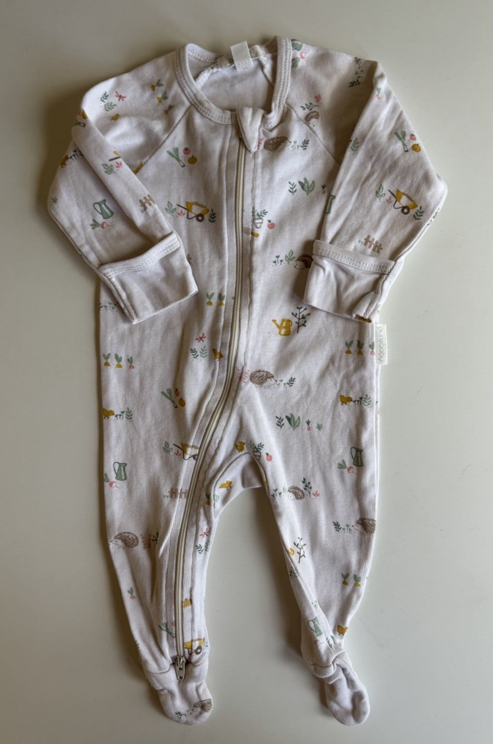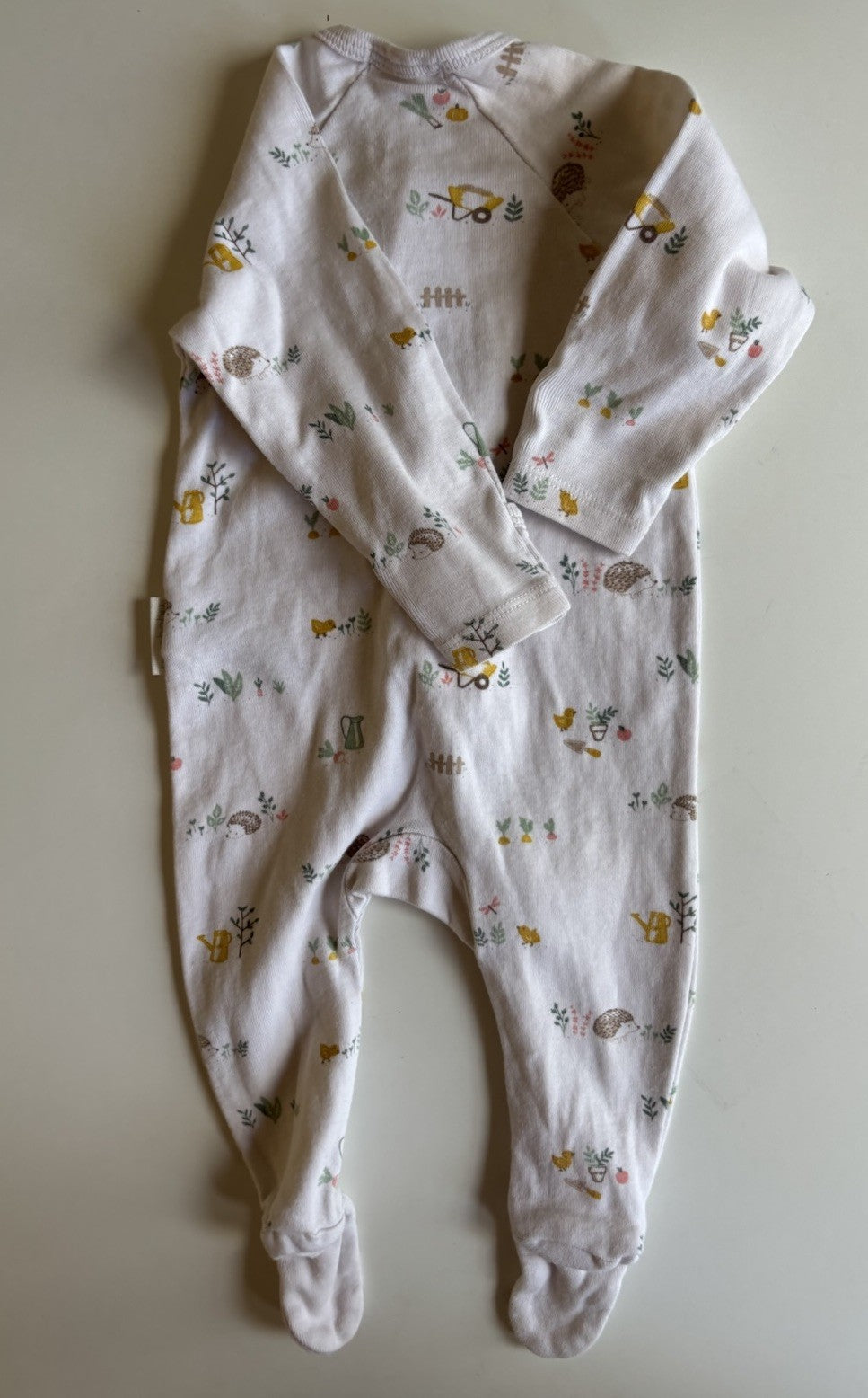 Purebaby baby size 0-3 months white garden animals one-piece, VGUC