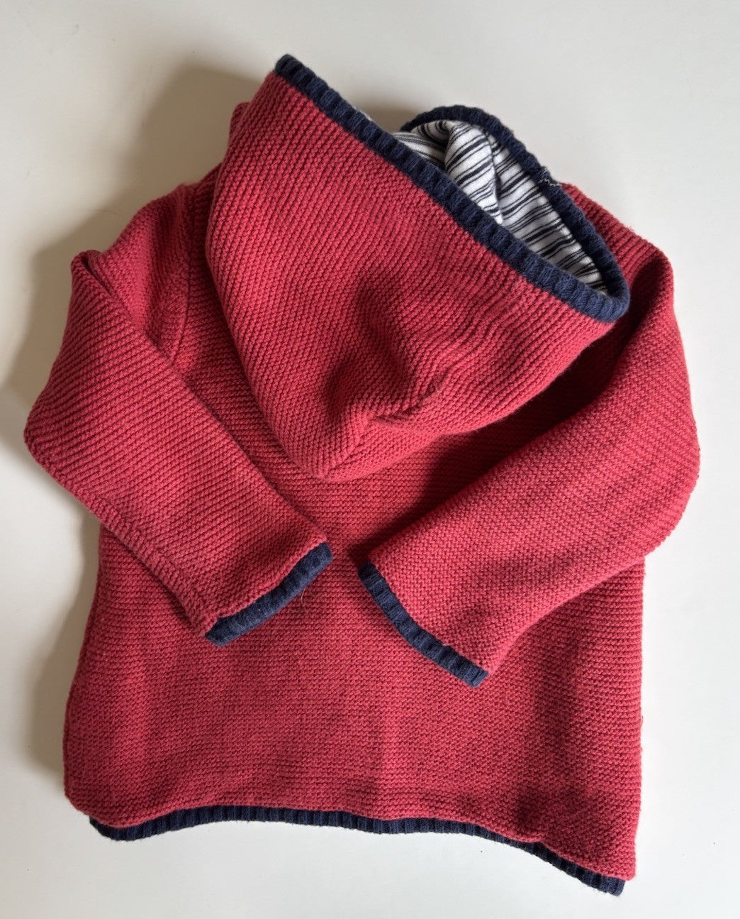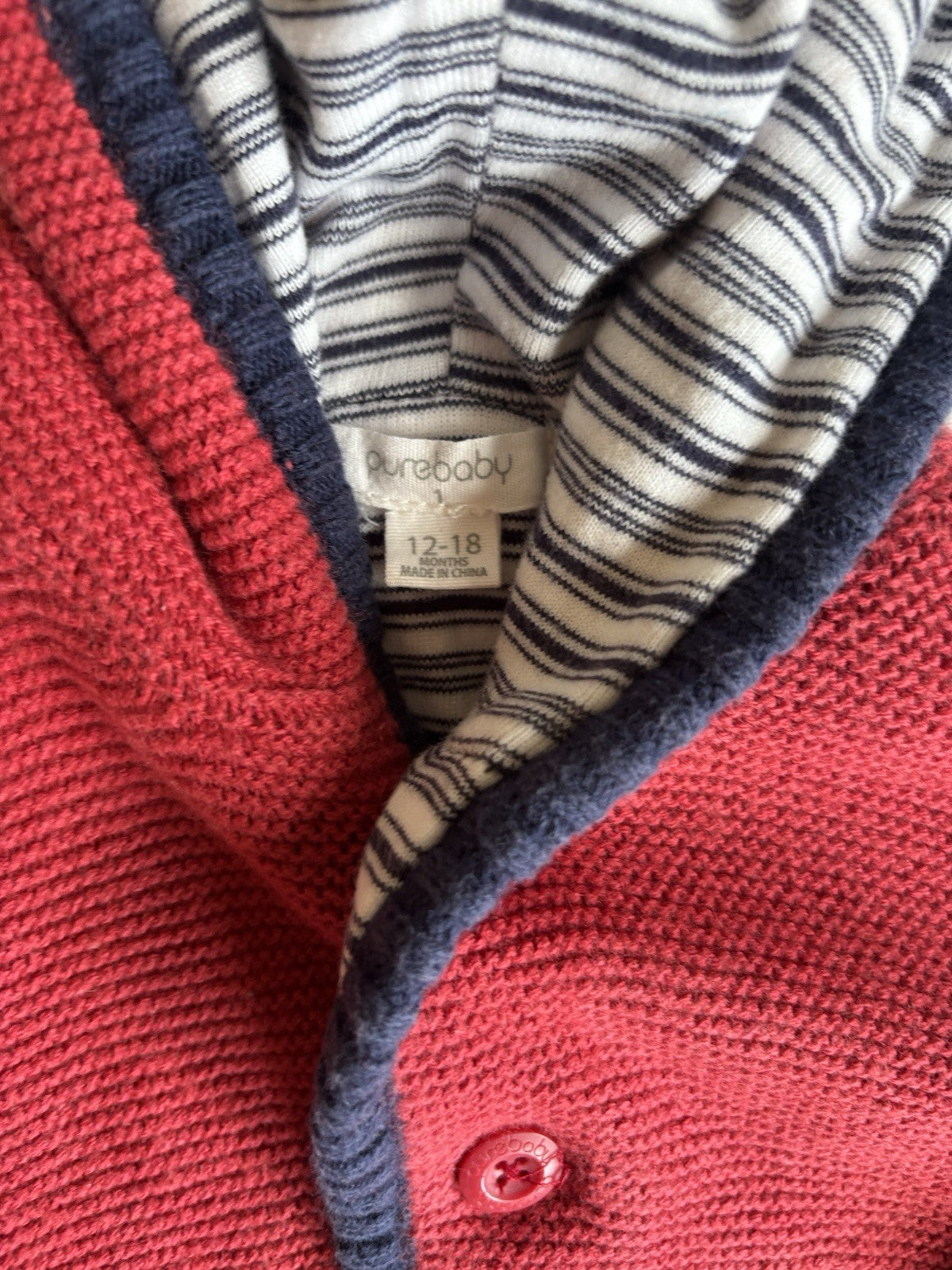 Purebaby baby size 12-18 months red knitted button up cardigan hood, V