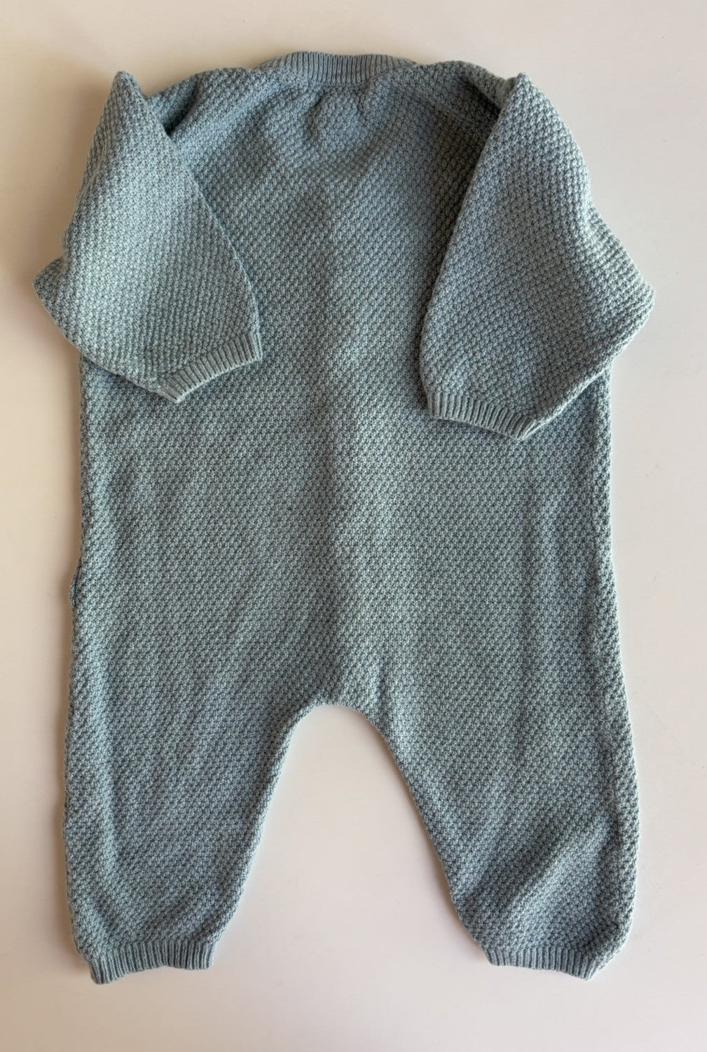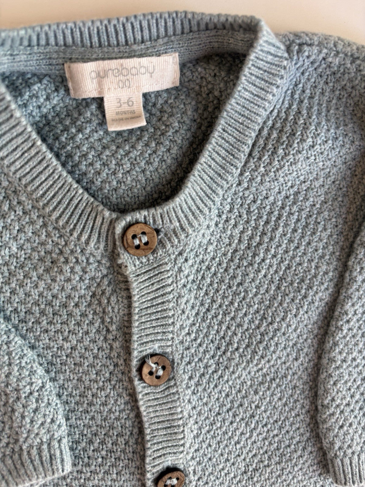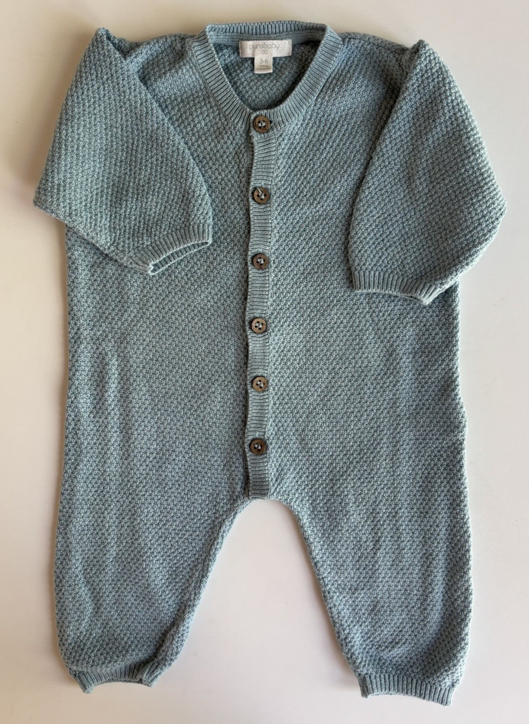 Purebaby baby size 3-6 months blue knitted button up one-piece, VGUC