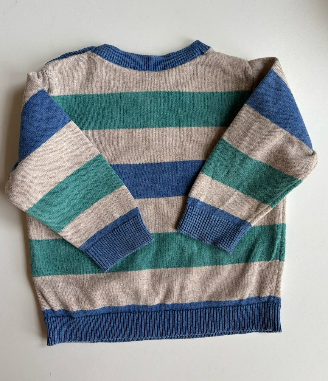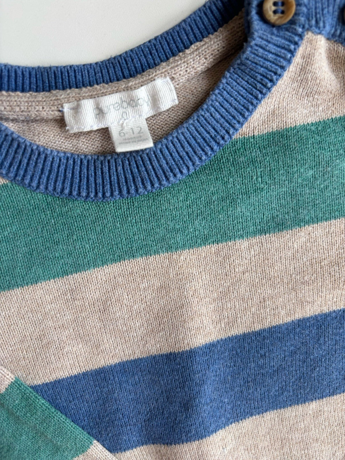 Purebaby baby size 6-12 months green blue stripe knitted jumper, VGUC
