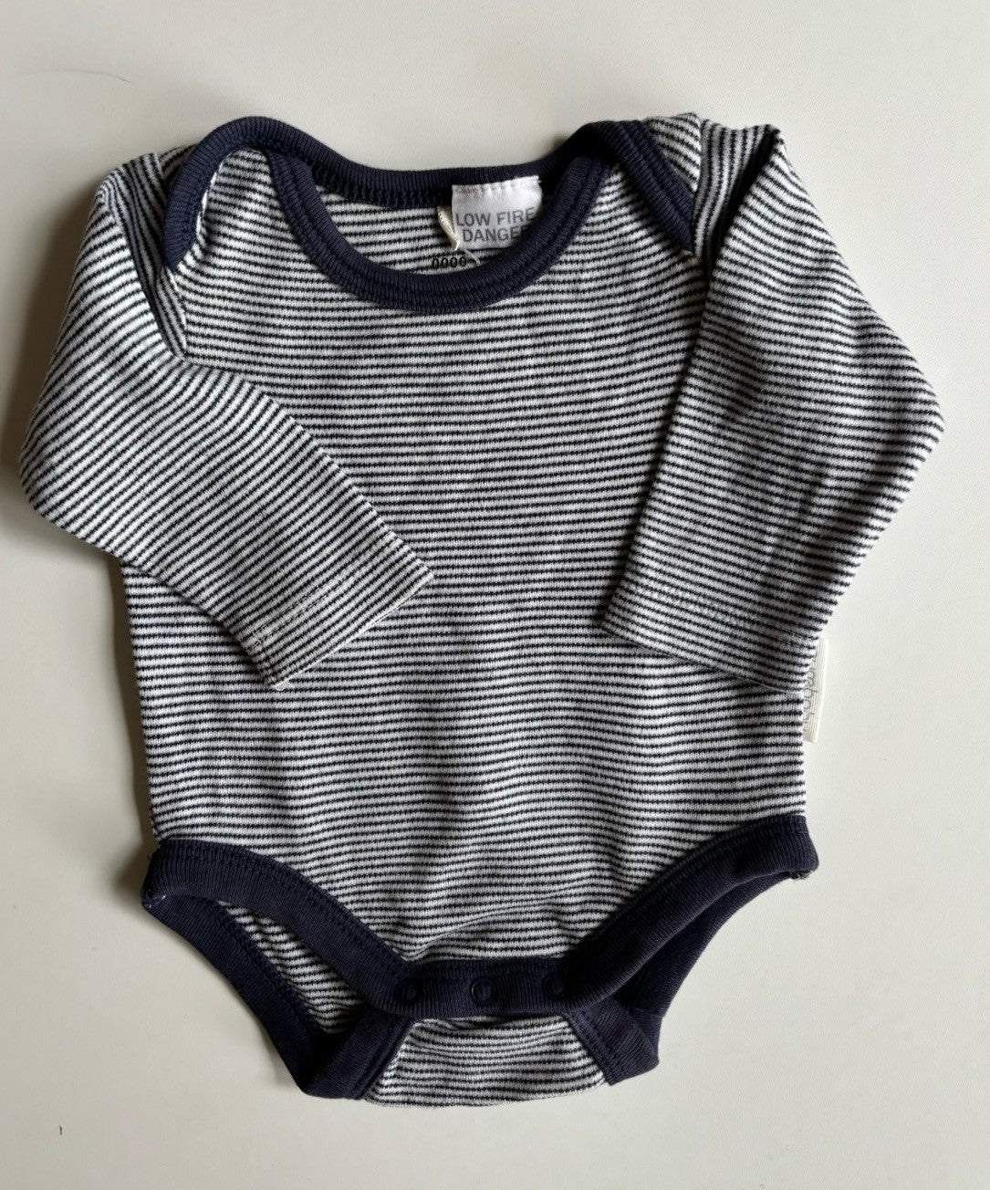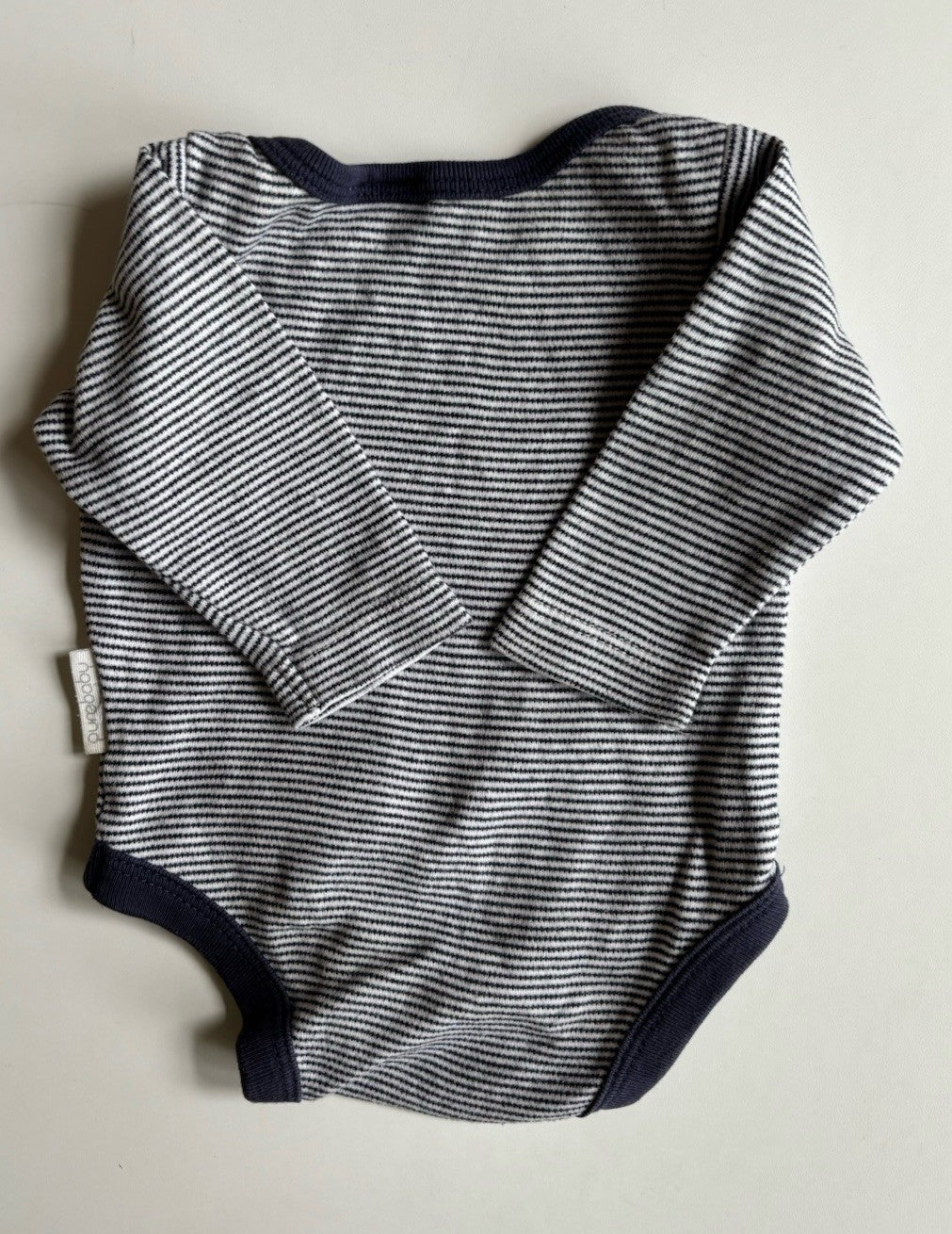Purebaby baby size newborn navy blue white stripe bodysuit, VGUC