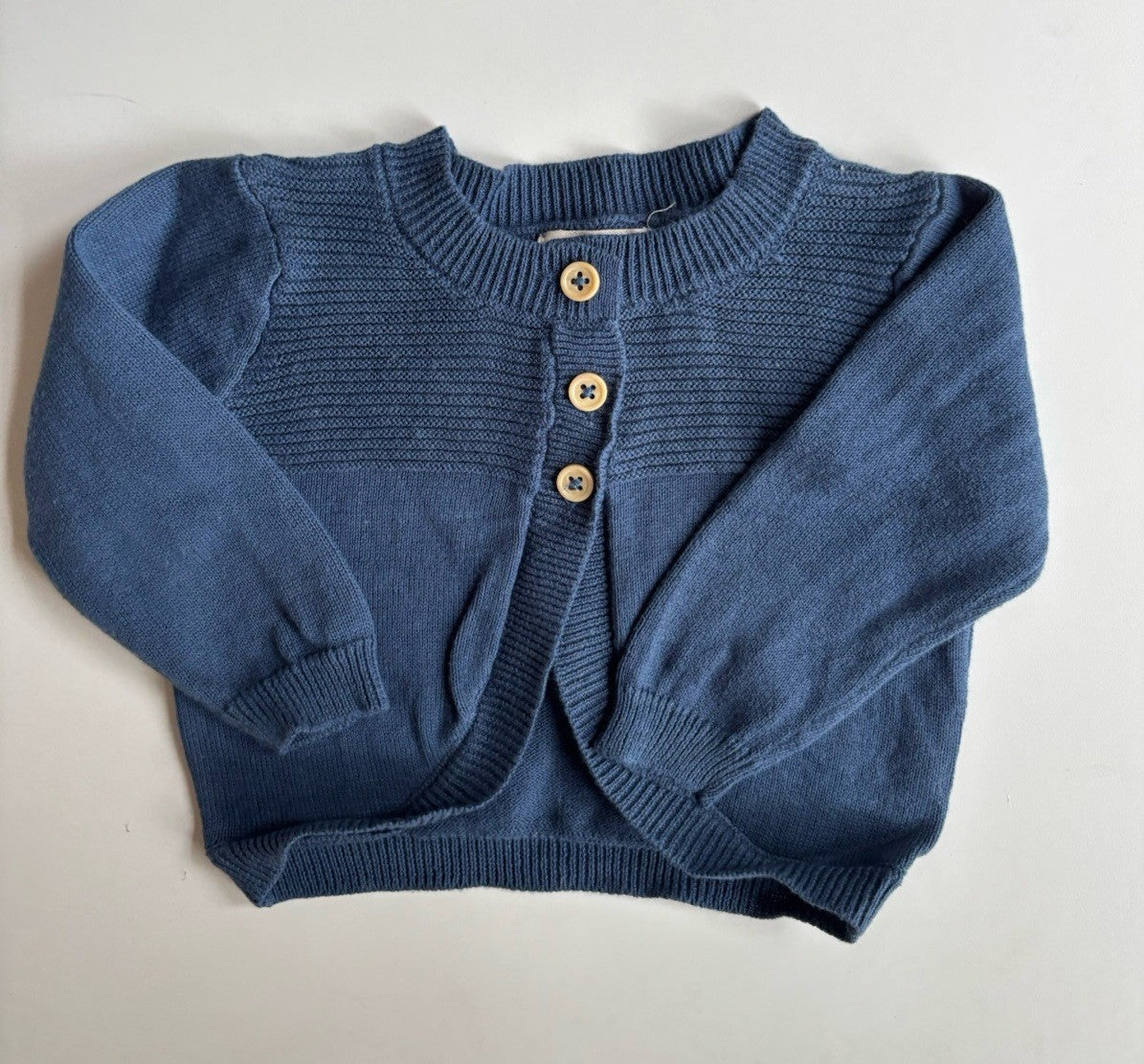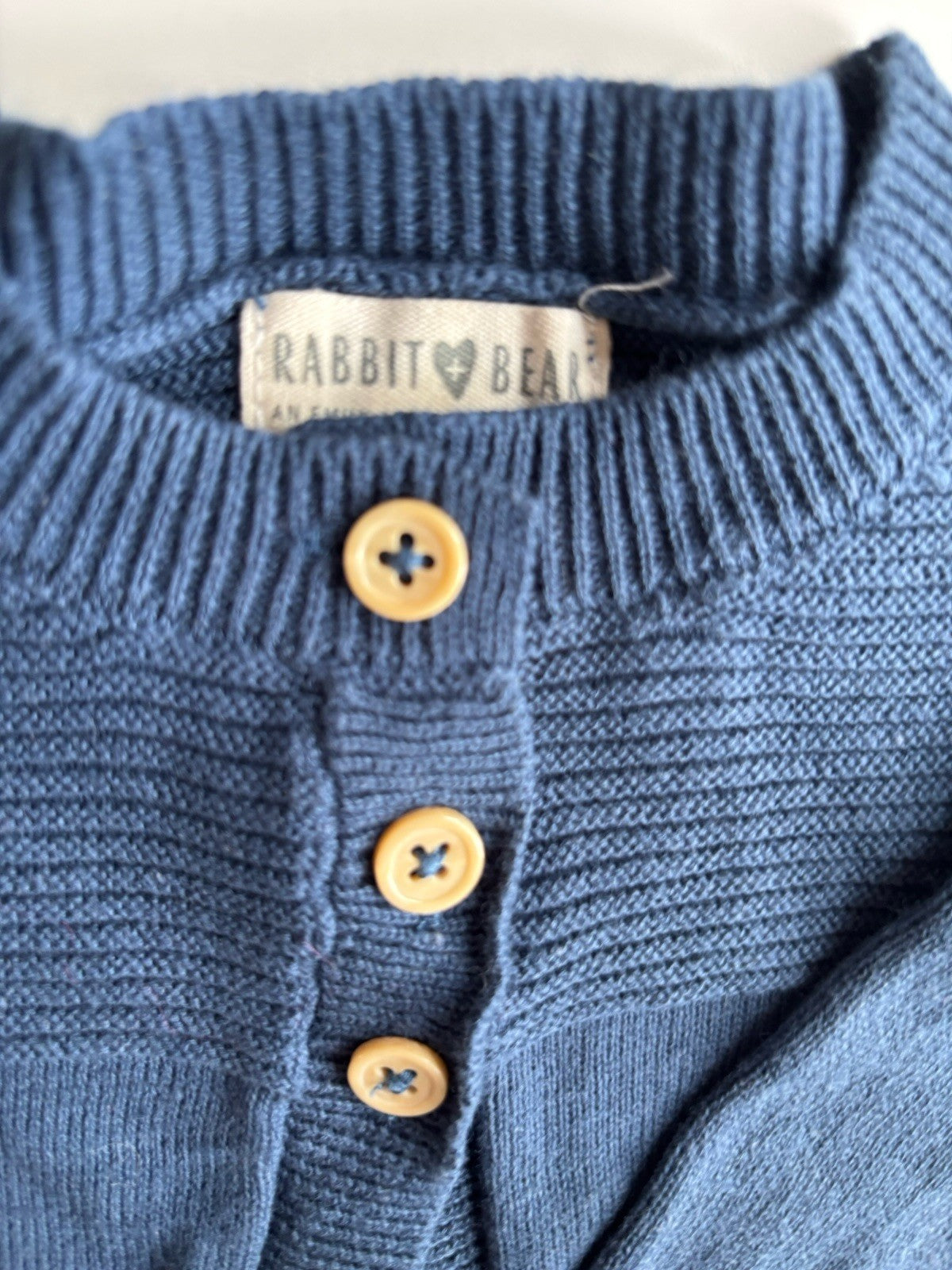 Rabbit & Bear baby size 3-6 months blue knitted cardigan jumper, VGUC