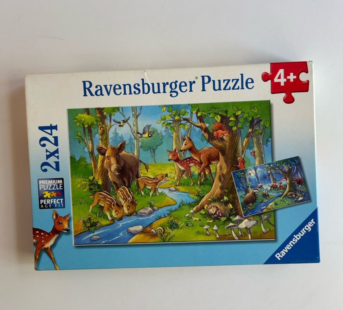 Ravensburger kids 4+ years 2x24 piece jigsaw puzzles animals creek, VGUC