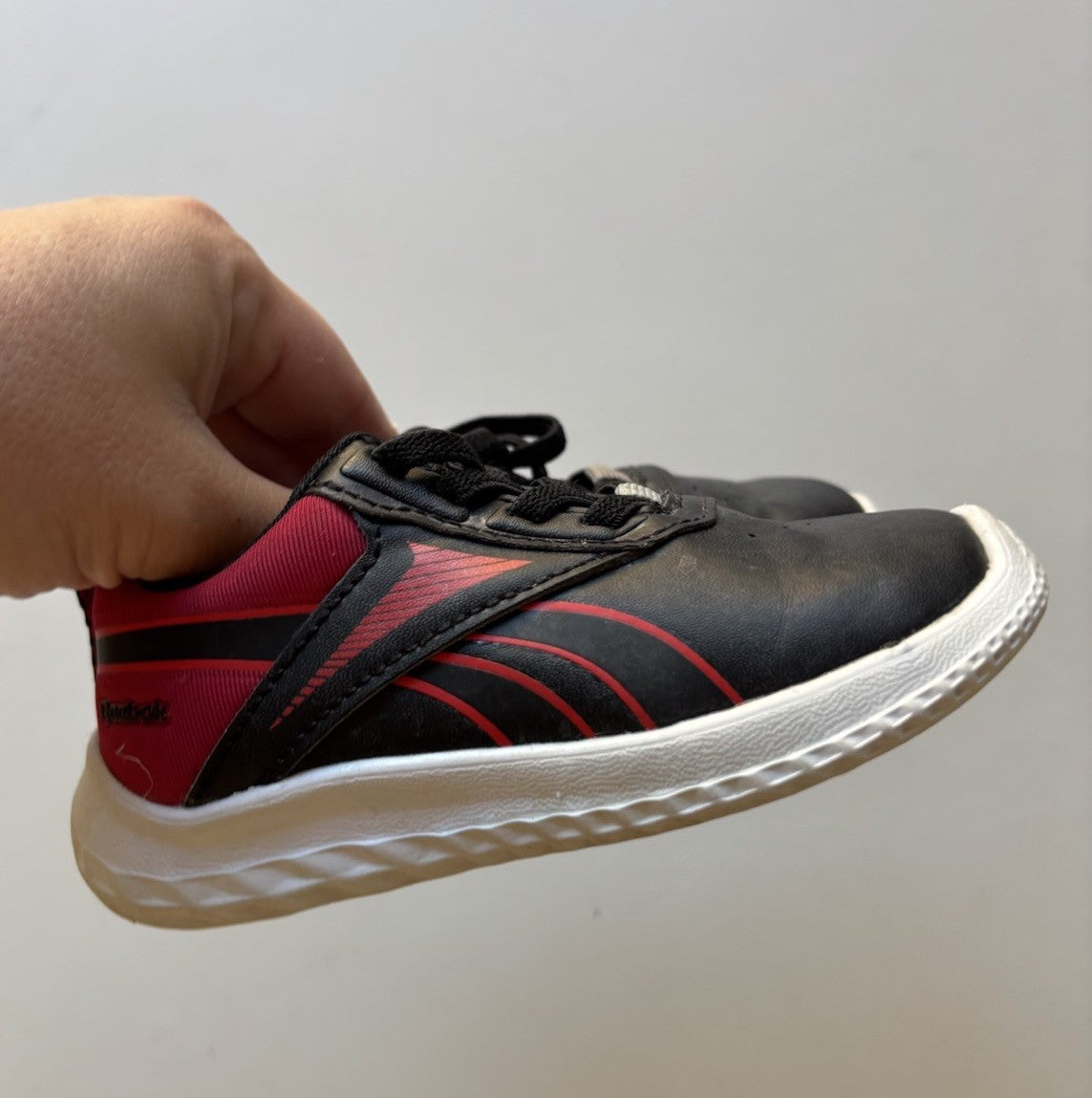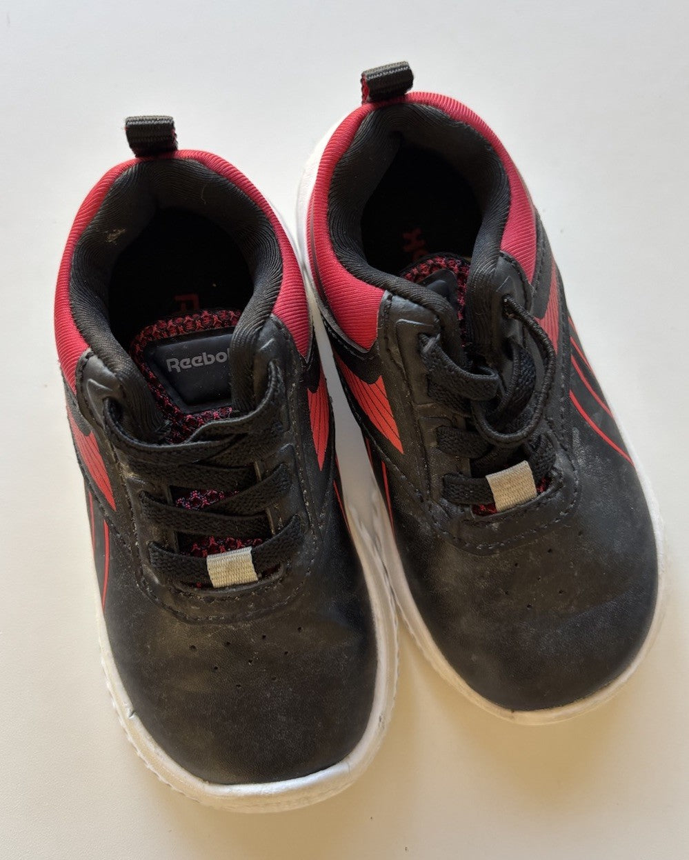 Reebok kids toddler size US 6/EUR 22 black red sneakers shoes, VGUC